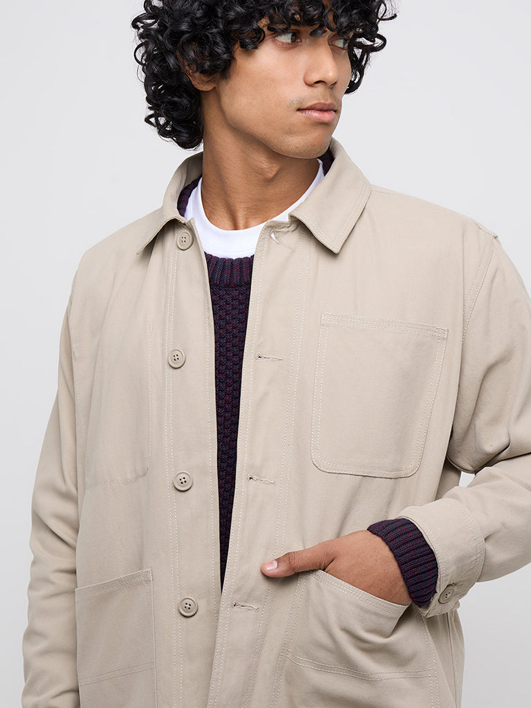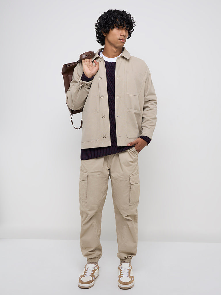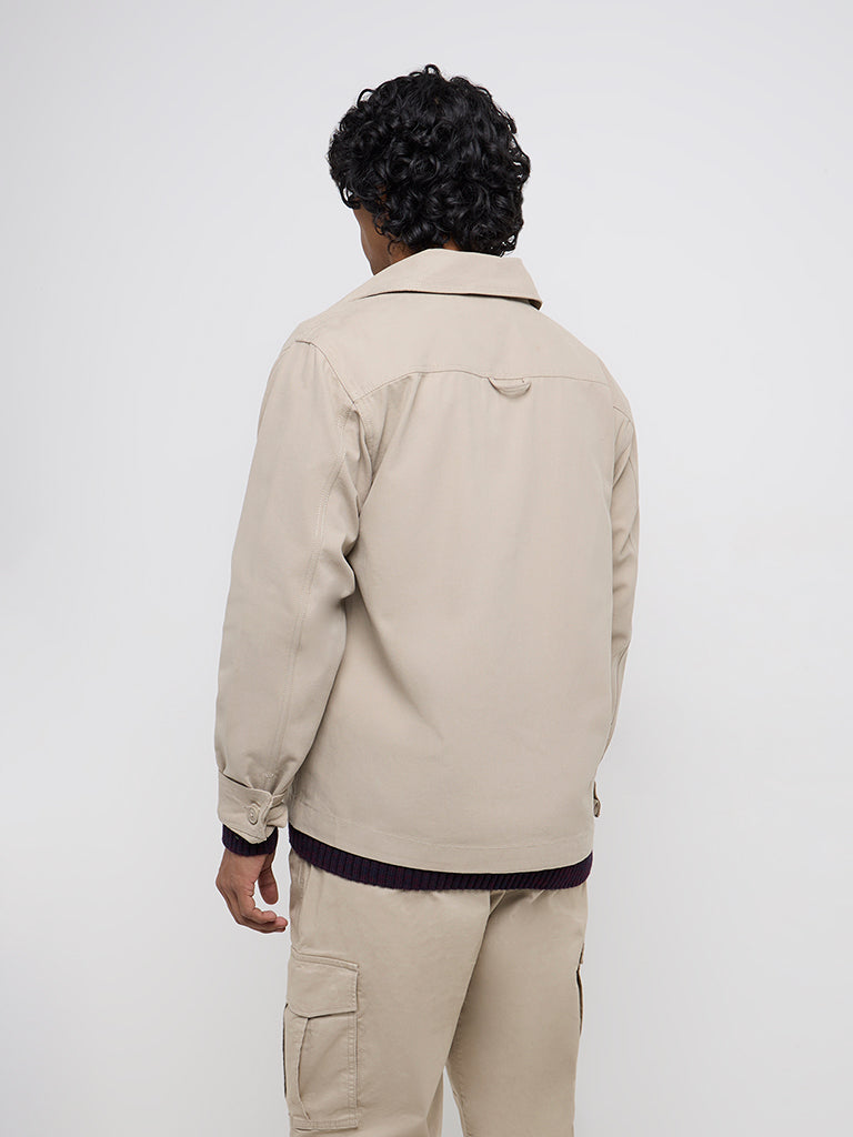 WES Casuals Beige Relaxed-Fit Cotton Jacket
