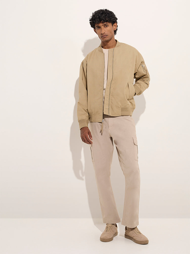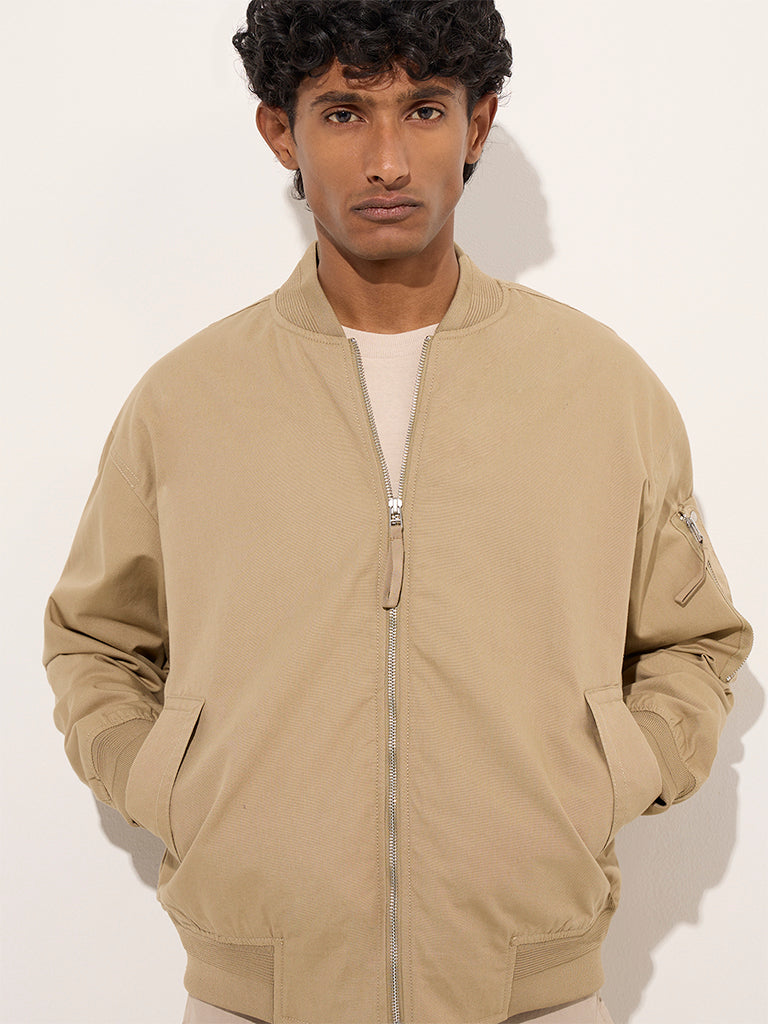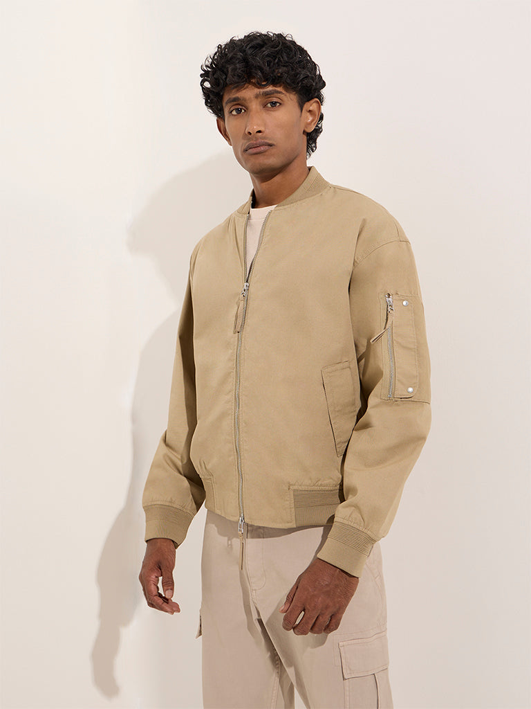 WES Casuals Beige Relaxed-Fit Cotton Jacket