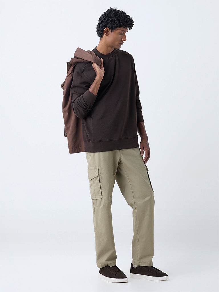 WES Casuals Beige Relaxed-Fit Mid-Rise Cotton-Blend Pants