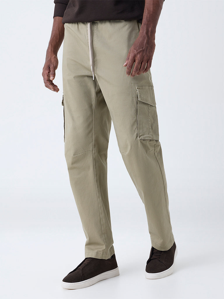 Perfect for off-duty adventures. these beige cargo pants from WES Casuals combine comfort with utility. Cut in a relaxed frame with an elastic waistband and drawstrings for a flexible fit. they feature multiple functional pockets. including zippered ones. to keep essentials close. The cotton-blend fabric ensures ease of movement. making them a go-to for laid-back weekends.