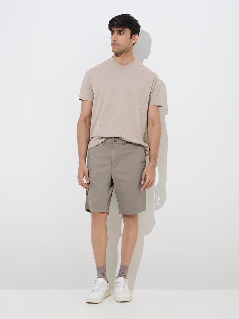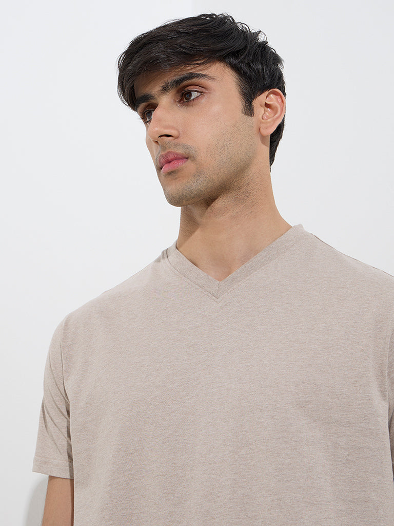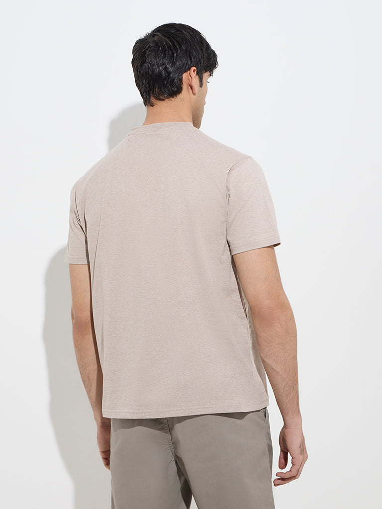 WES Casuals Beige Slim-Fit Cotton T-Shirt