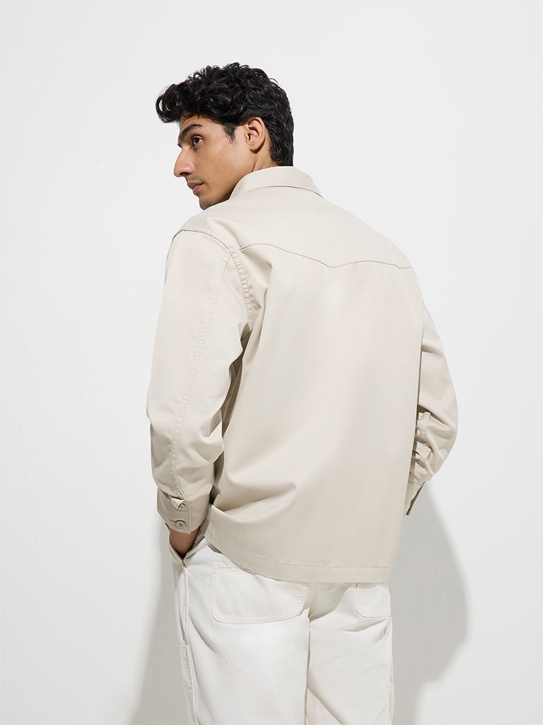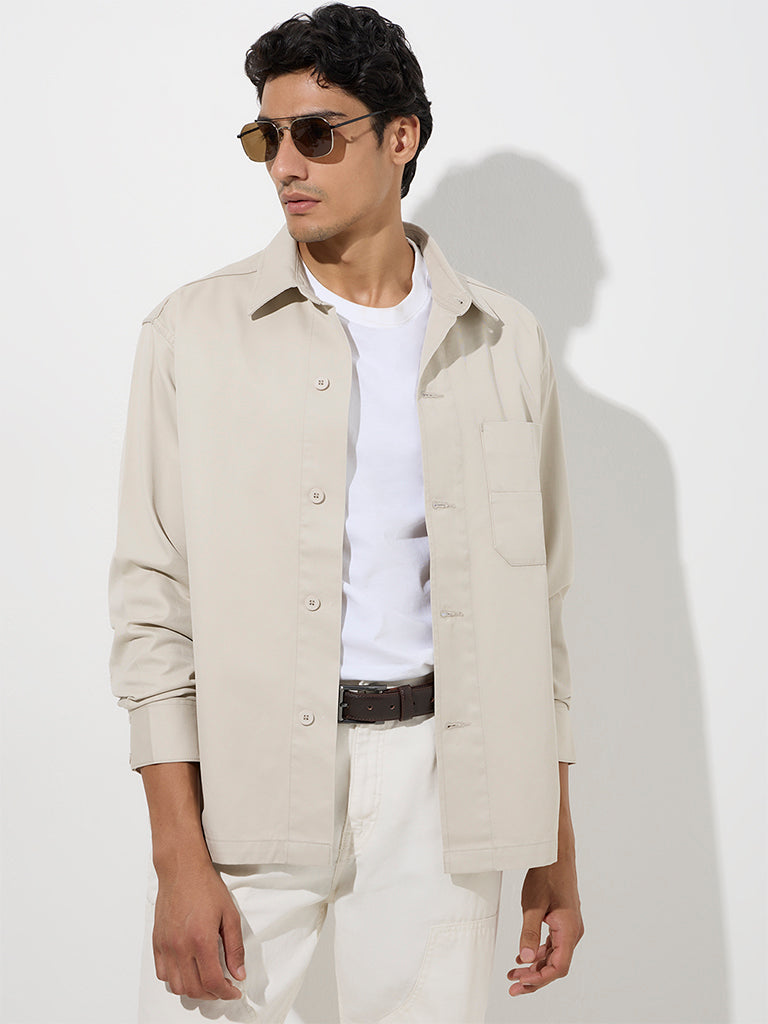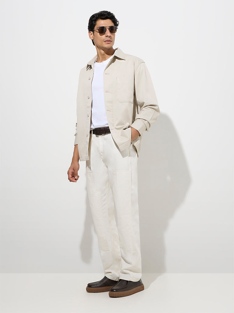 WES Casuals Beige Solid Relaxed-Fit Cotton Shirt