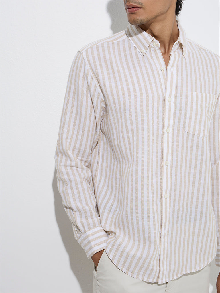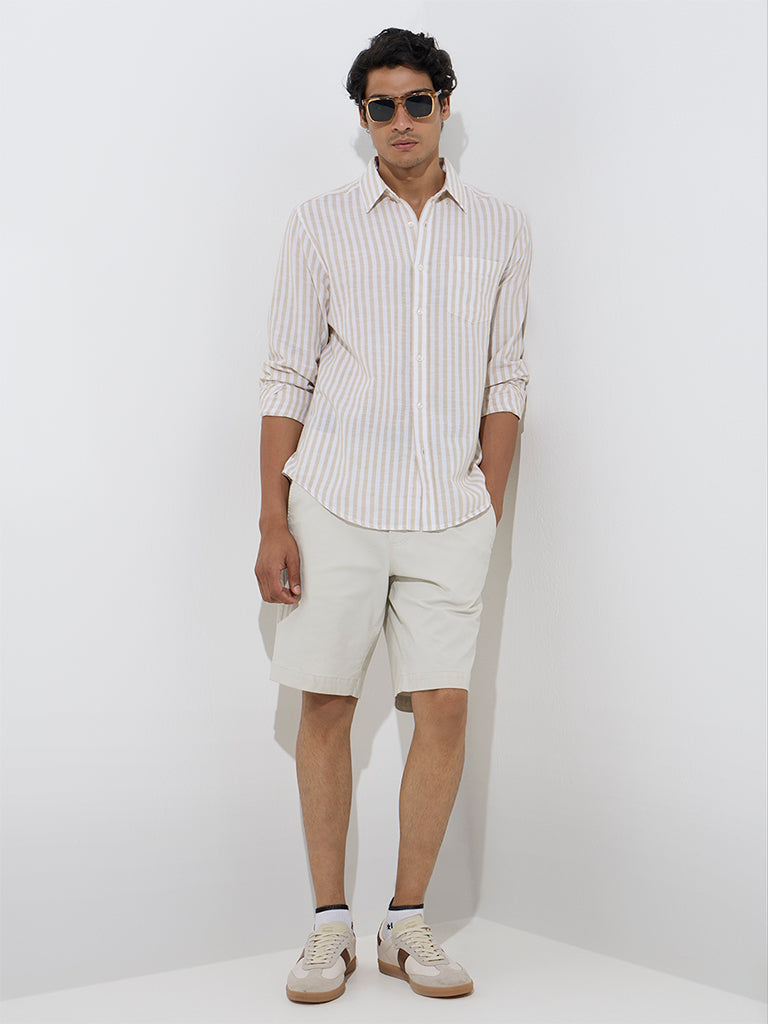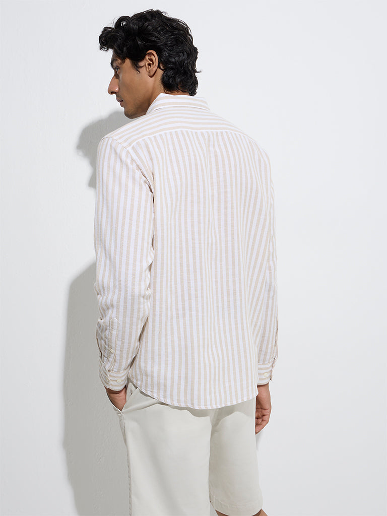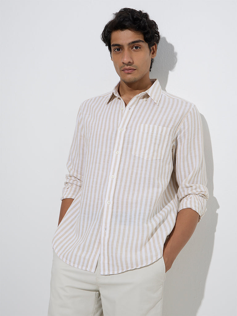 WES Casuals Beige Stripe Relaxed-Fit Cotton-Blend Shirt