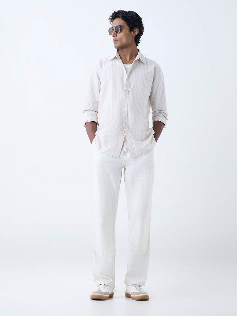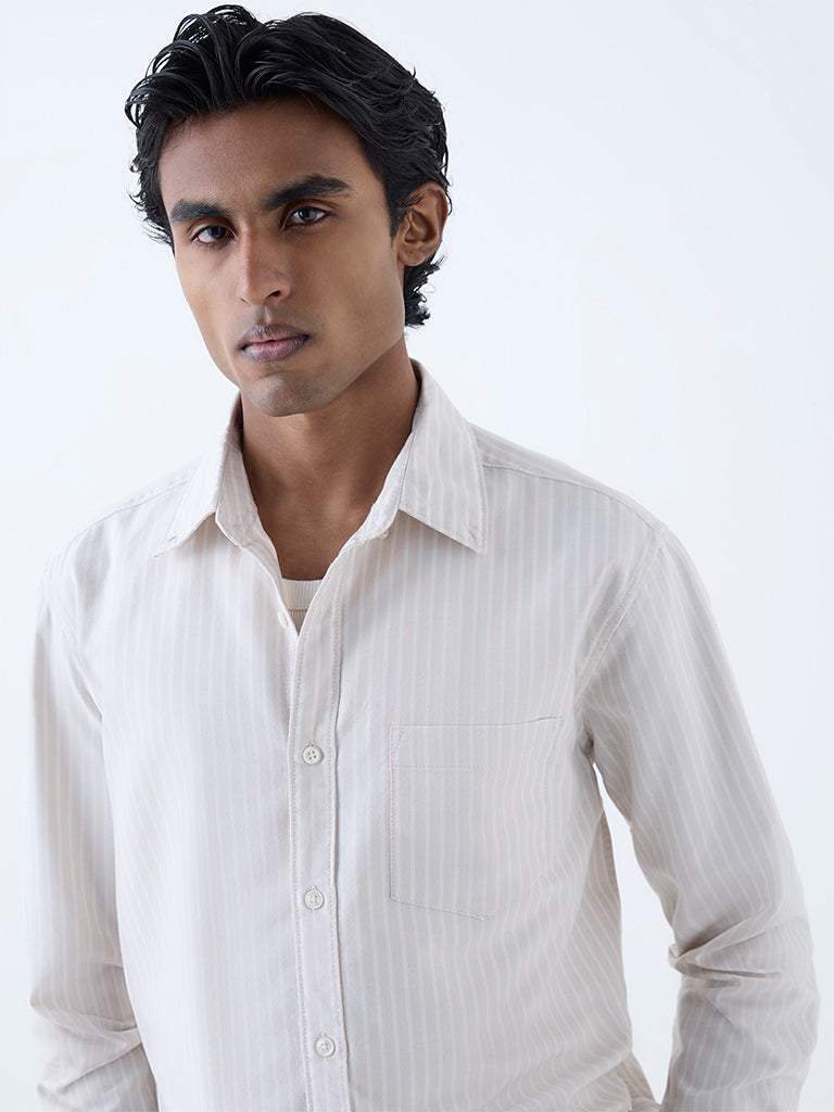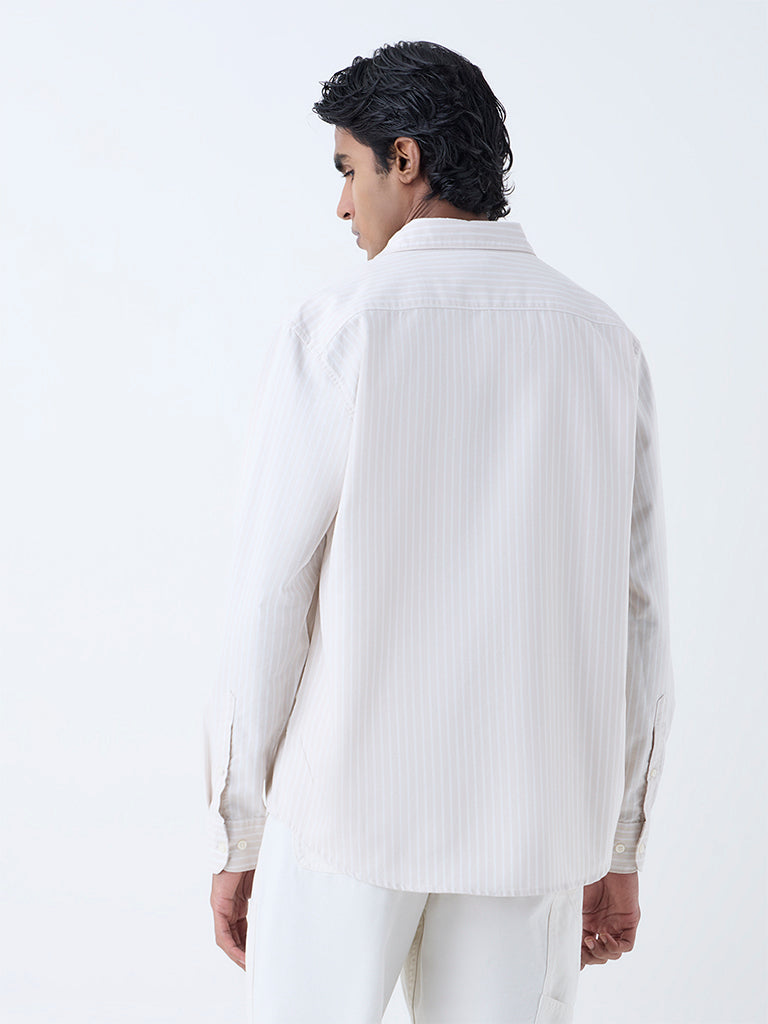 WES Casuals Beige Striped Relaxed-Fit Cotton Shirt