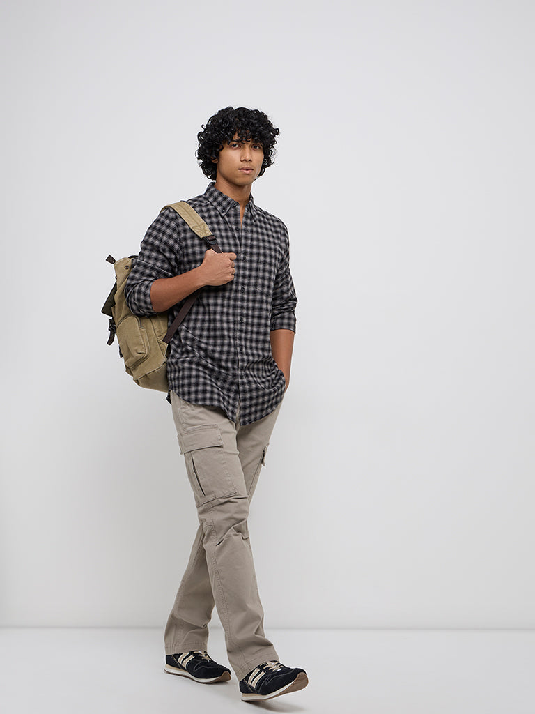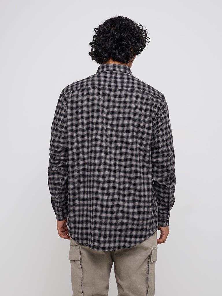 WES Casuals Black Checkered Relaxed-Fit Cotton-Blend Shirt