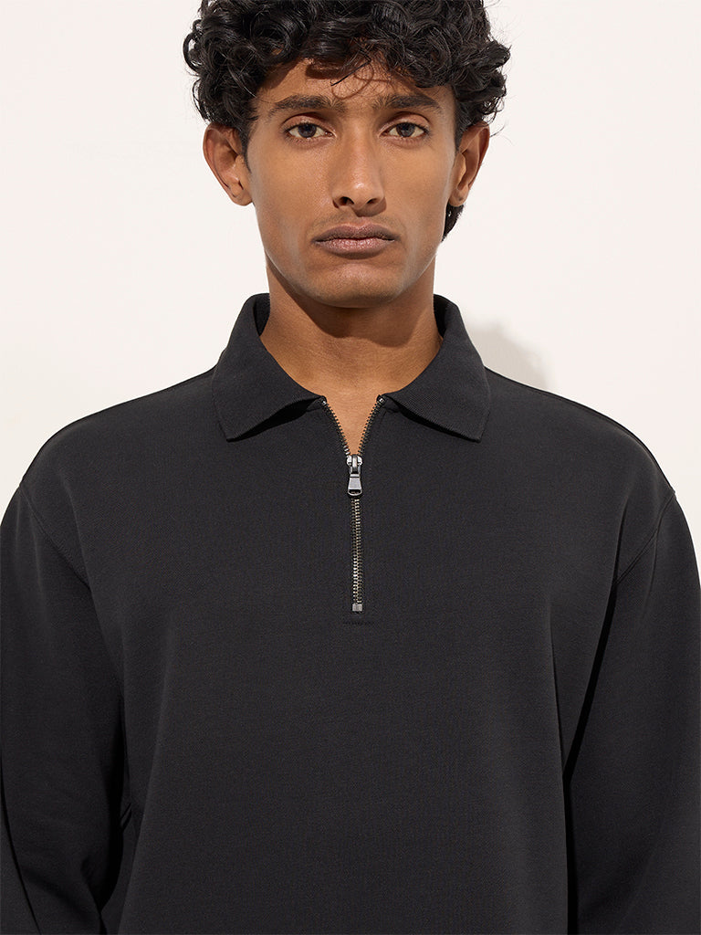 WES Casuals Black Quarter Zip Cotton-Blend Sweatshirt