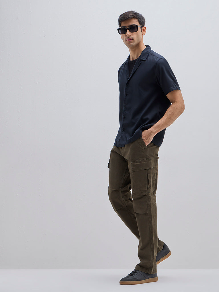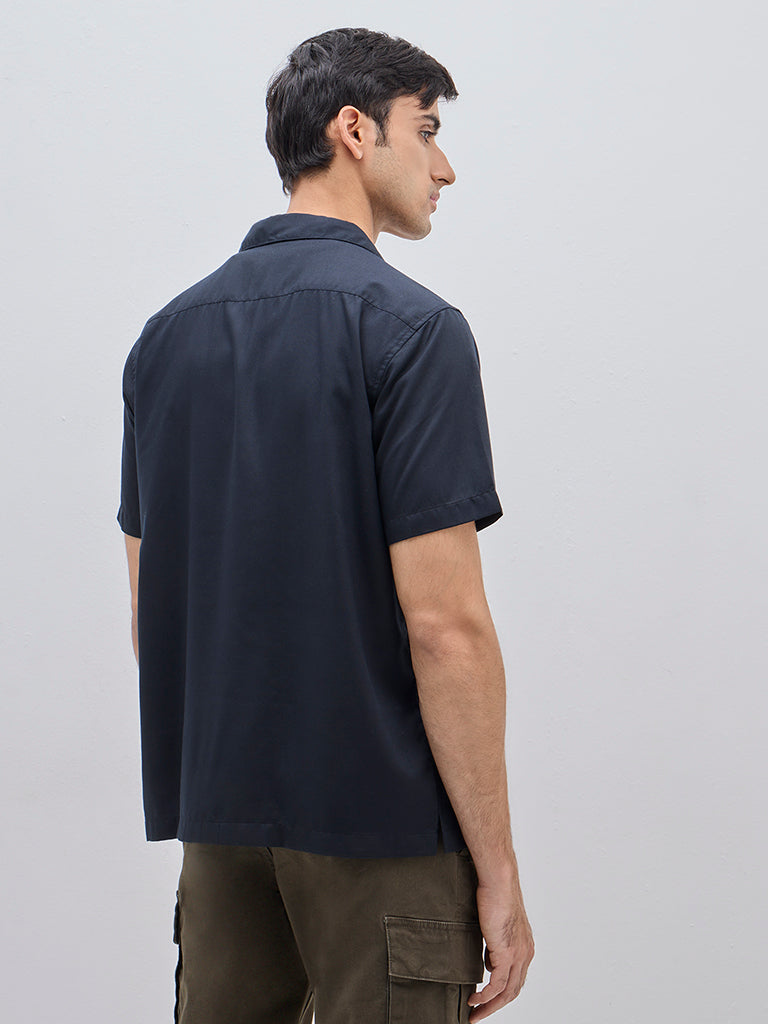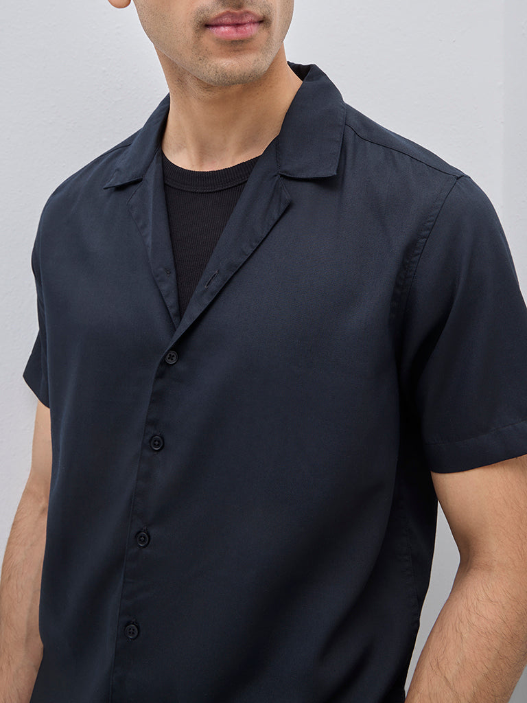 WES Casuals Black Solid Relaxed-Fit Shirt