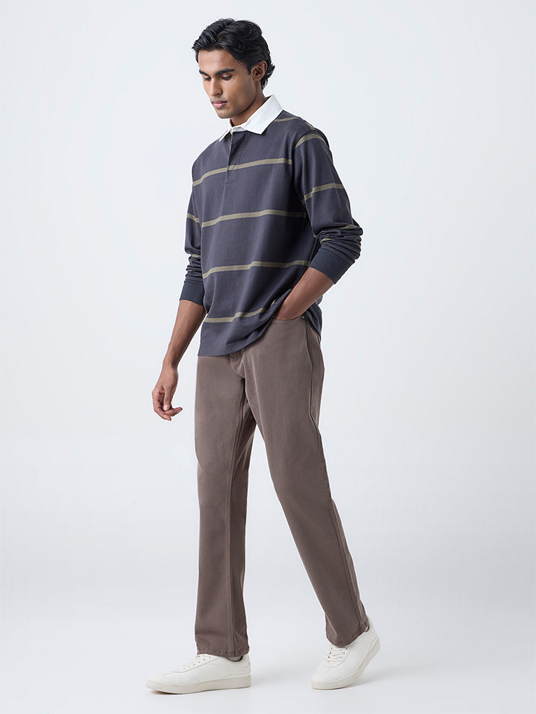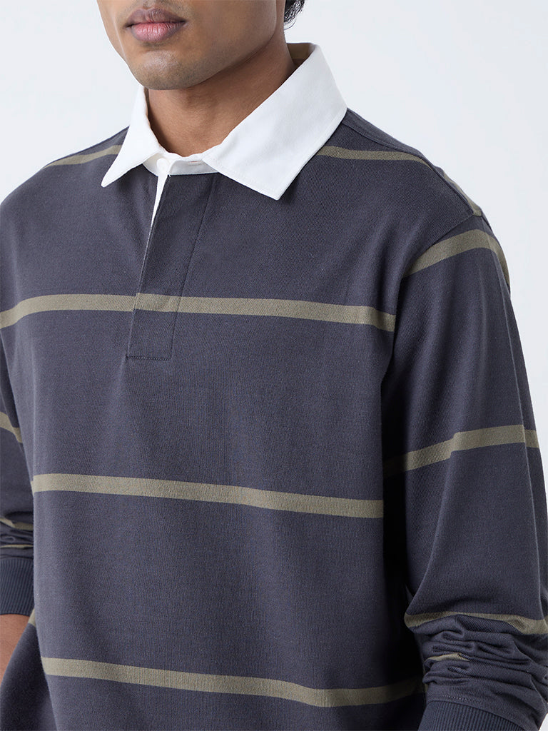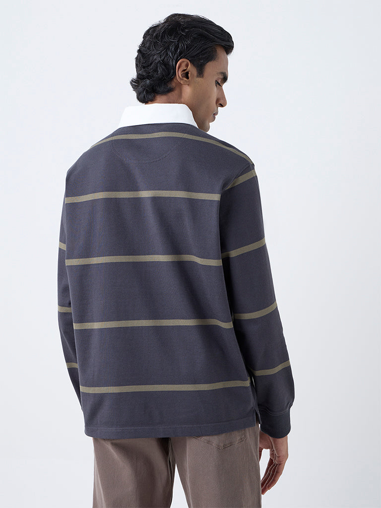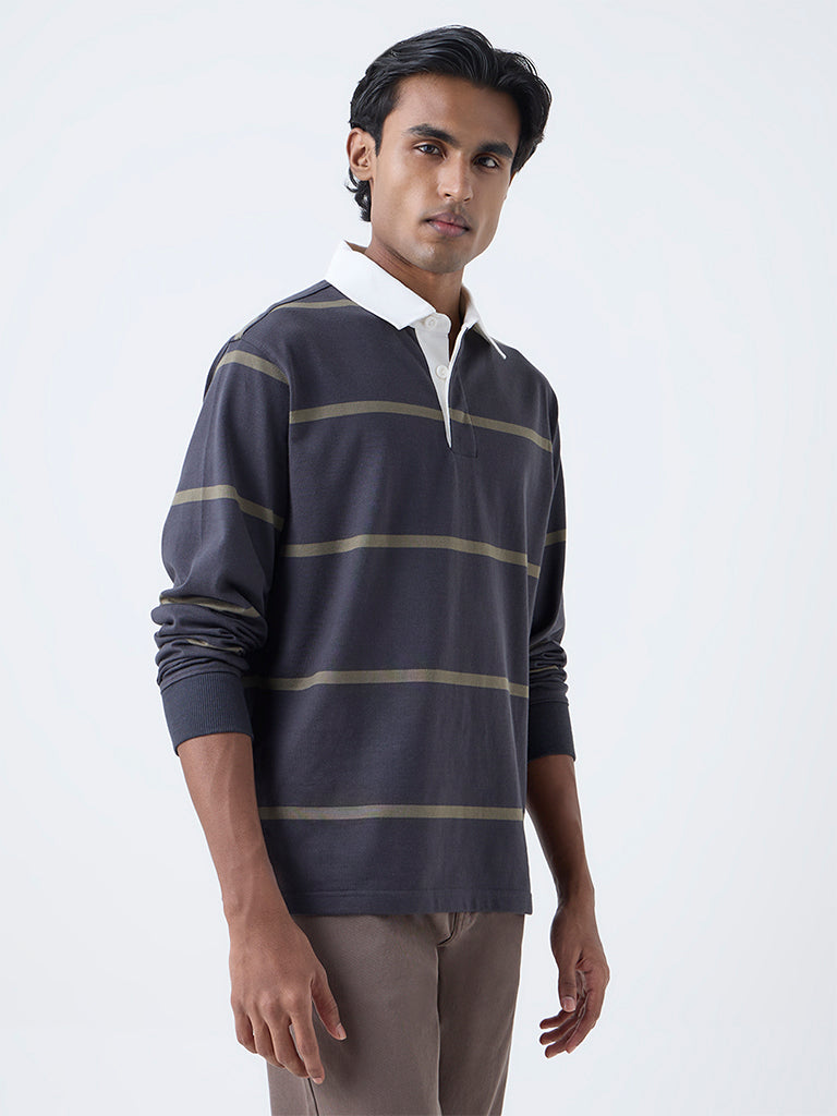 WES Casuals Black Stripe Relaxed-Fit Cotton-Blend Polo T-Shirt