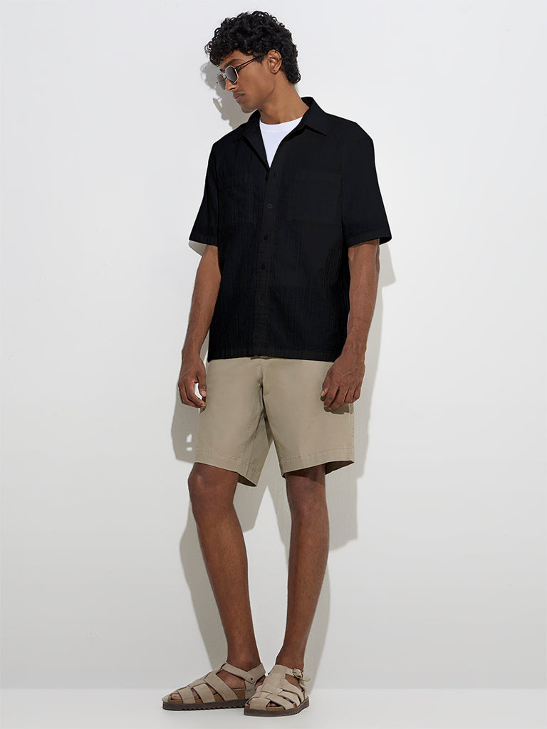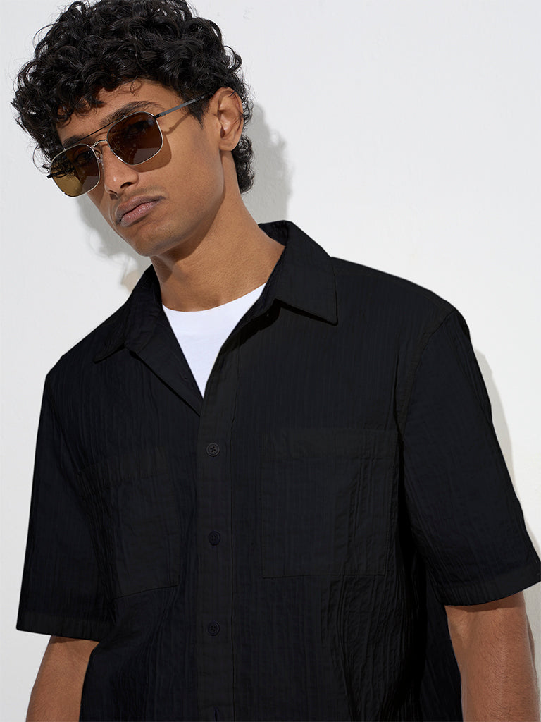 WES Casuals Black Textured Relaxed-Fit Cotton-Blend Shirt