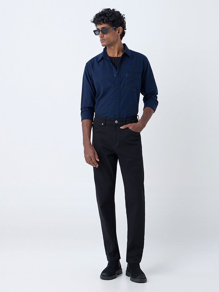 This blue checkered shirt from WES Casuals is tailored in a relaxed fit for everyday ease. Designed with a buttoned collar. button-down front. full sleeves. and a front pocket. it brings a classic pattern together with practical details for versatile styling.