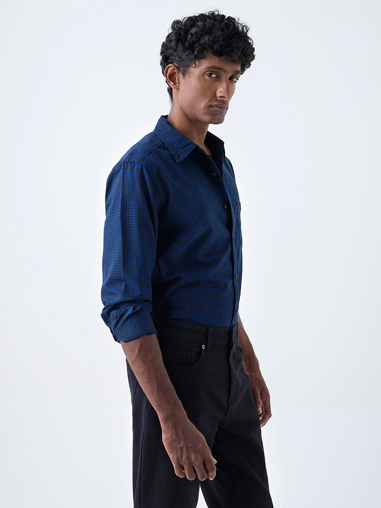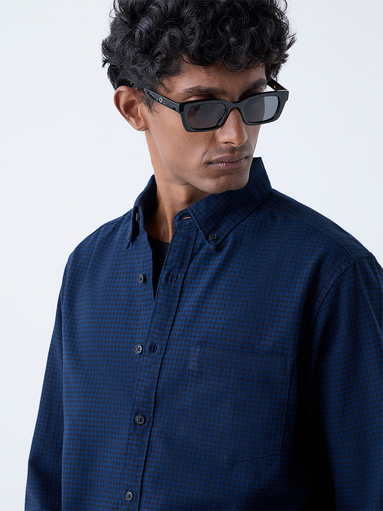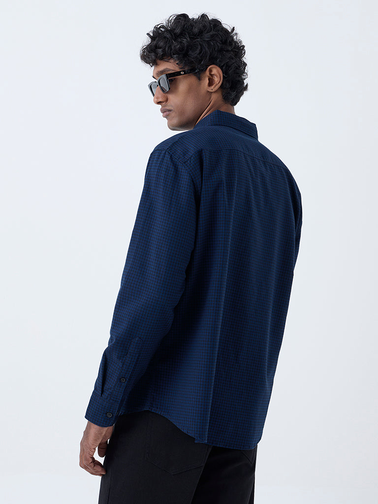 WES Casuals Blue Checkered Relaxed-Fit Cotton Shirt