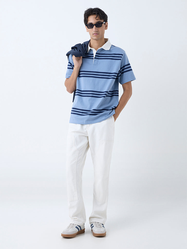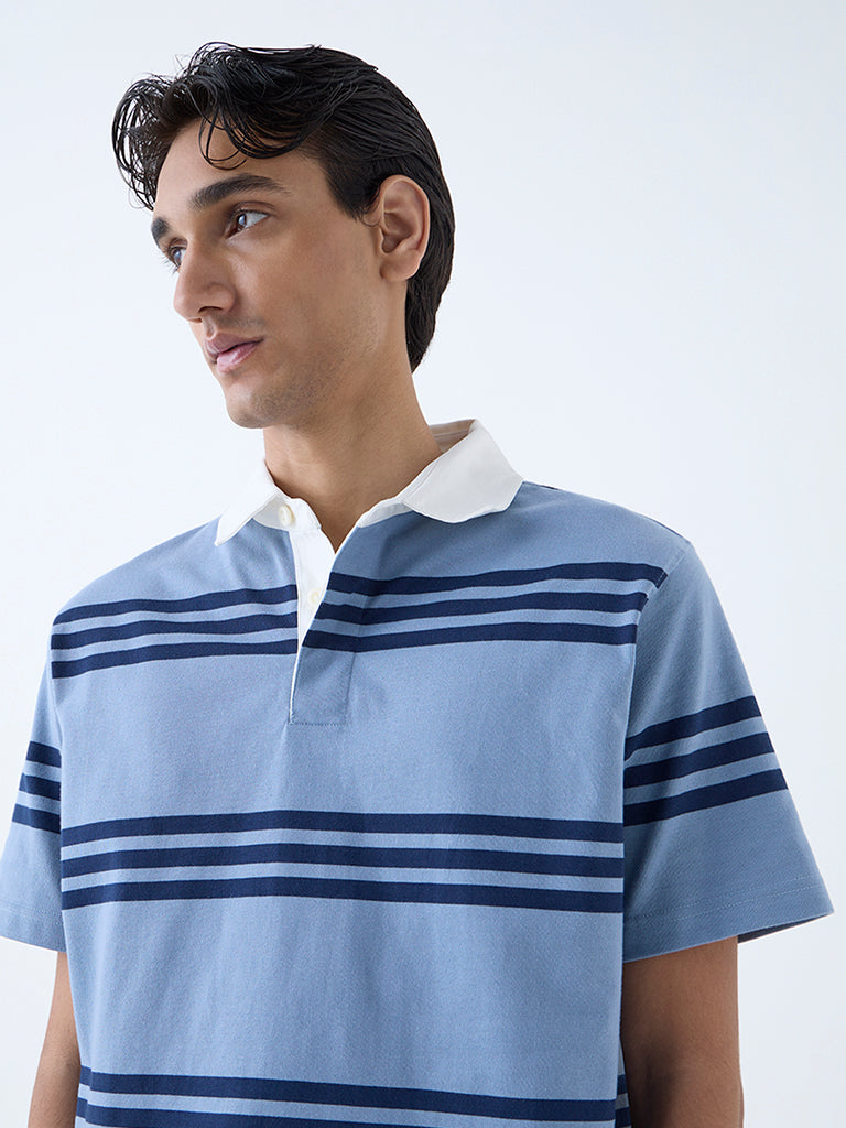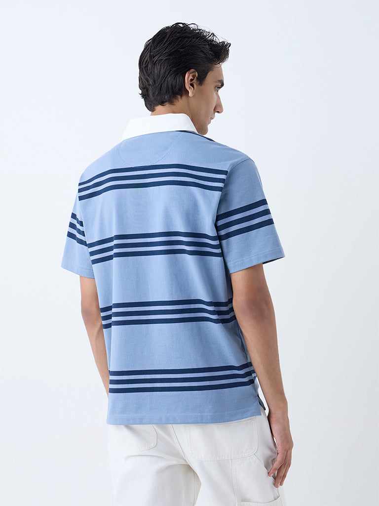 WES Casuals Blue Relaxed-Fit Cotton-Blend Polo T-Shirt