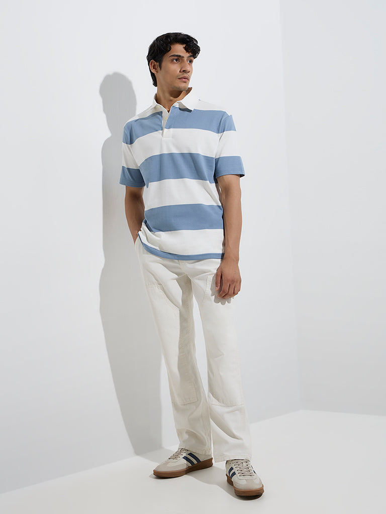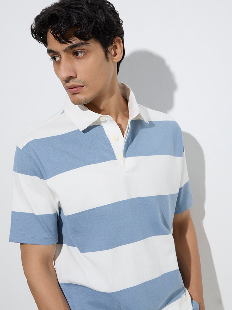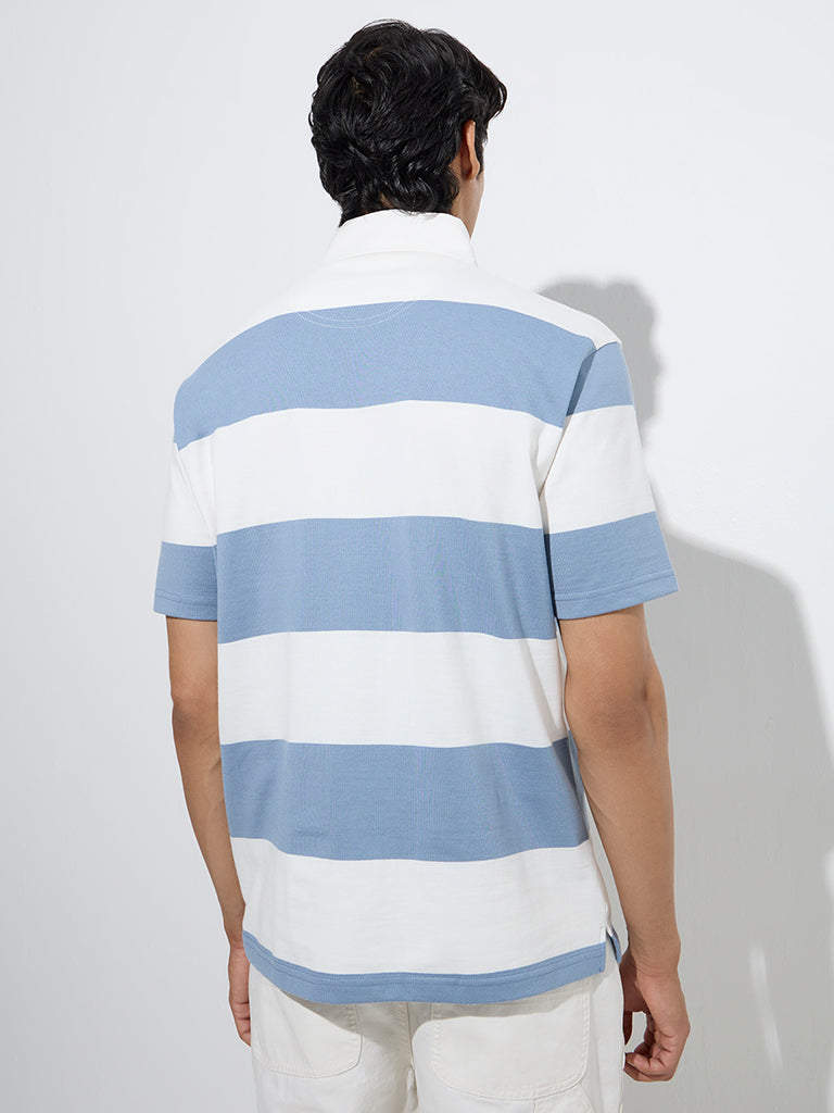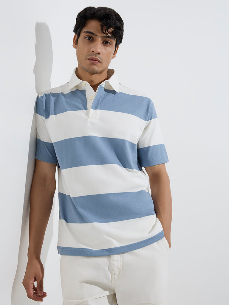 WES Casuals Blue Relaxed-Fit Cotton-Blend Polo T-Shirt