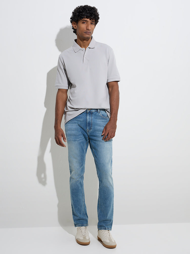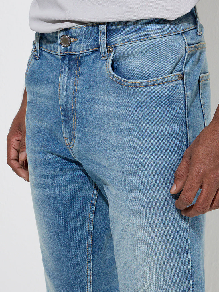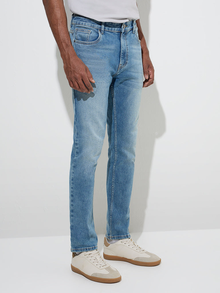 WES Casuals Blue Washed Slim-Fit Mid-Rise Jeans