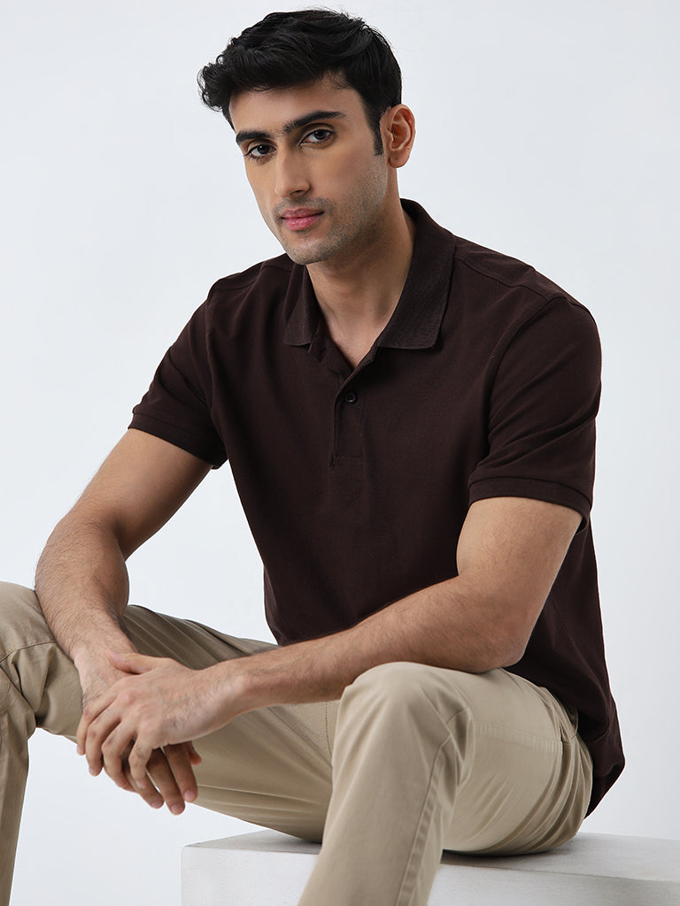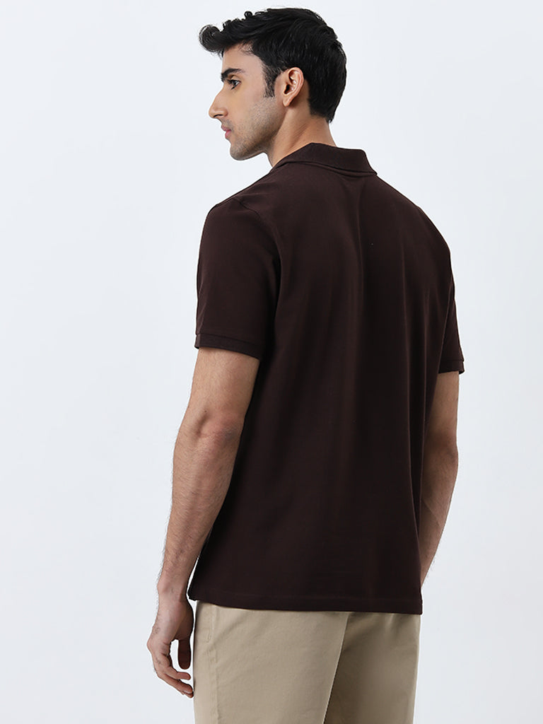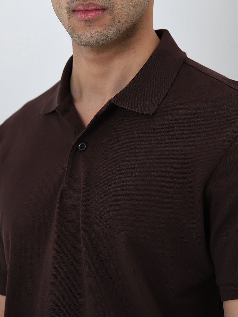WES Casuals Brown Relaxed-Fit Cotton-Blend Polo T-Shirt