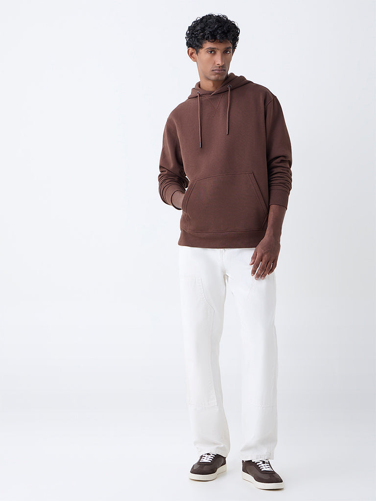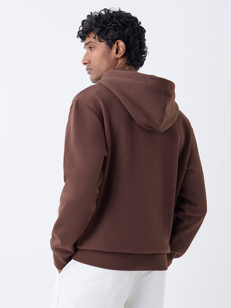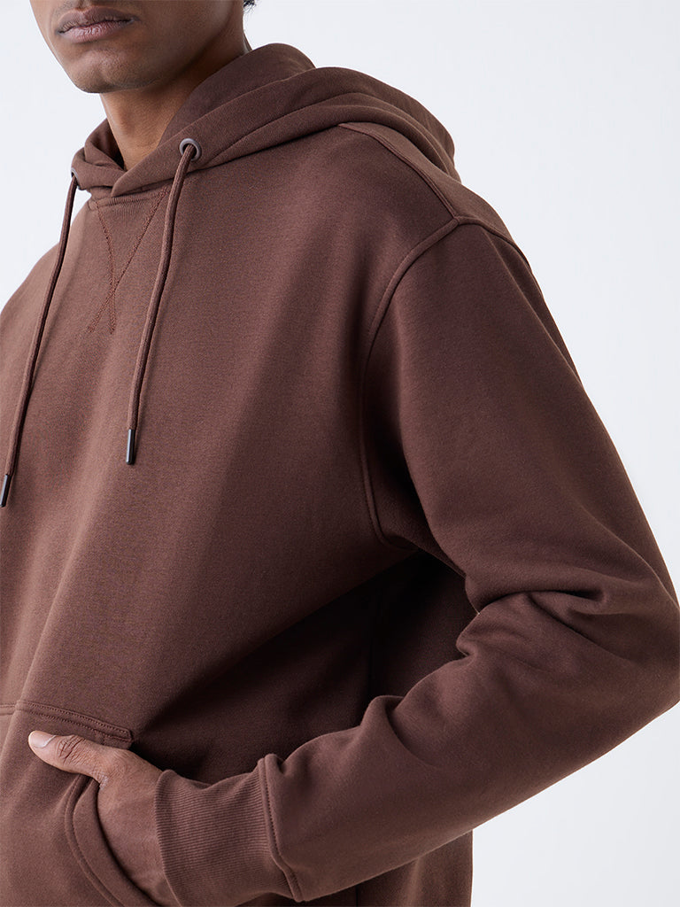 WES Casuals Brown Solid Relaxed-Fit Cotton-Blend Hoodie