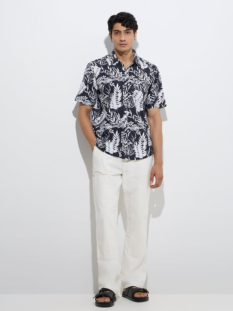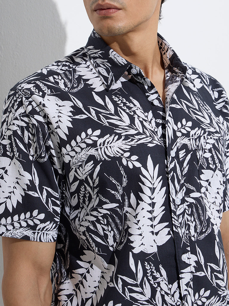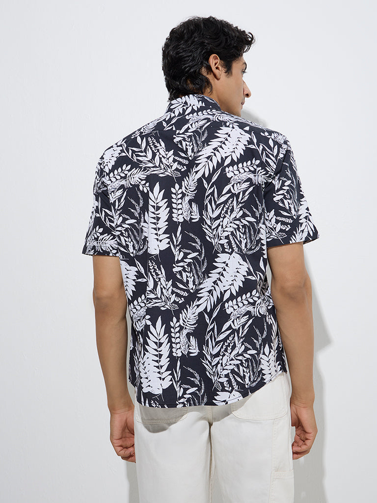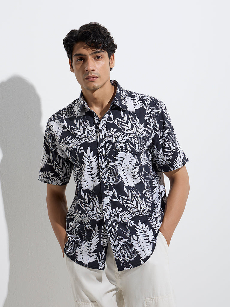 WES Casuals Charcoal Printed Relaxed-Fit Cotton Shirt