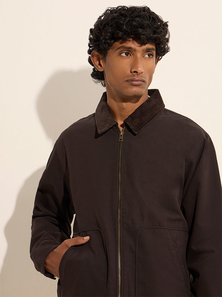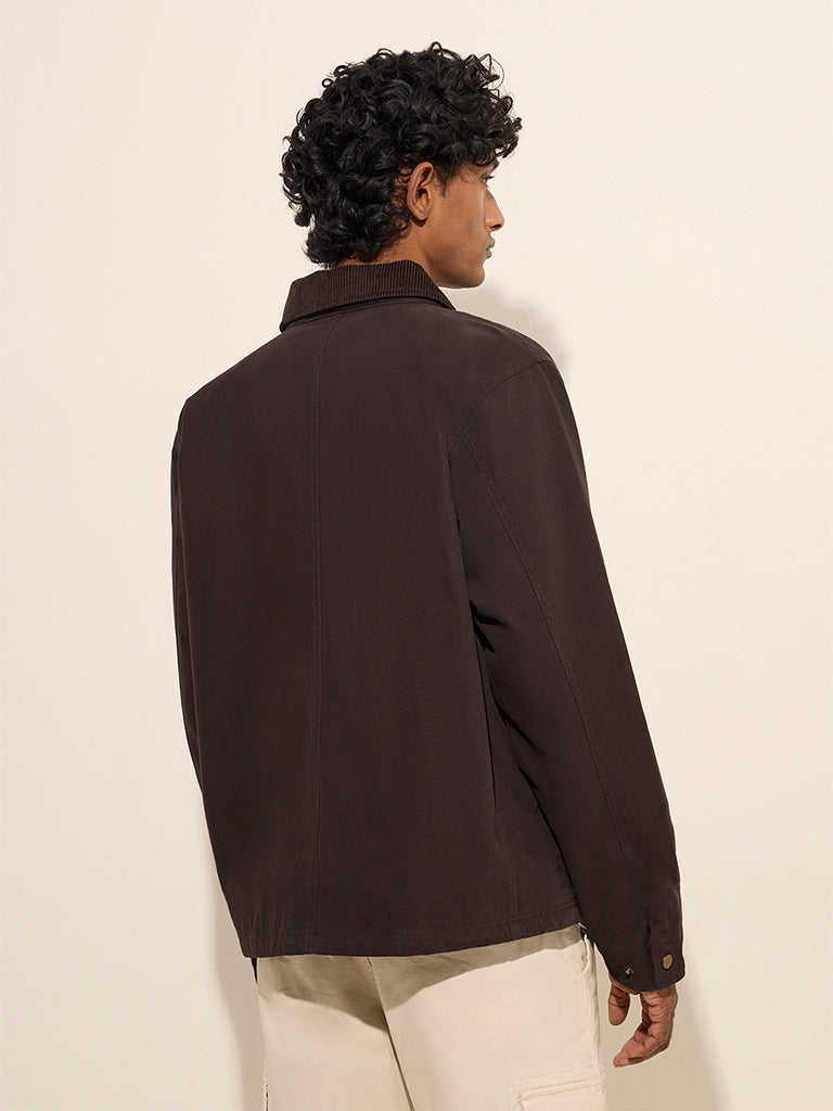 WES Casuals Dark Brown Relaxed-Fit Cotton Jacket