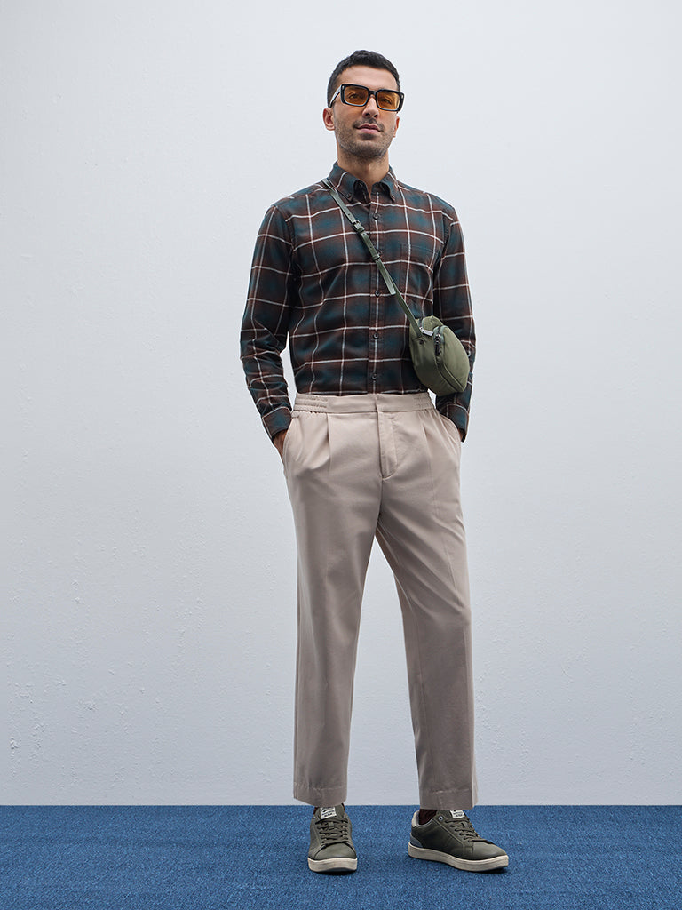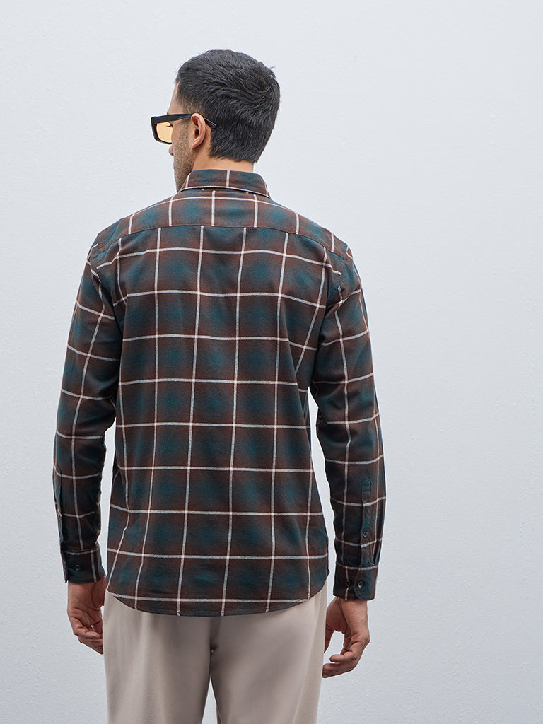 WES Casuals Dark Green Checkered Relaxed-Fit Cotton Shirt