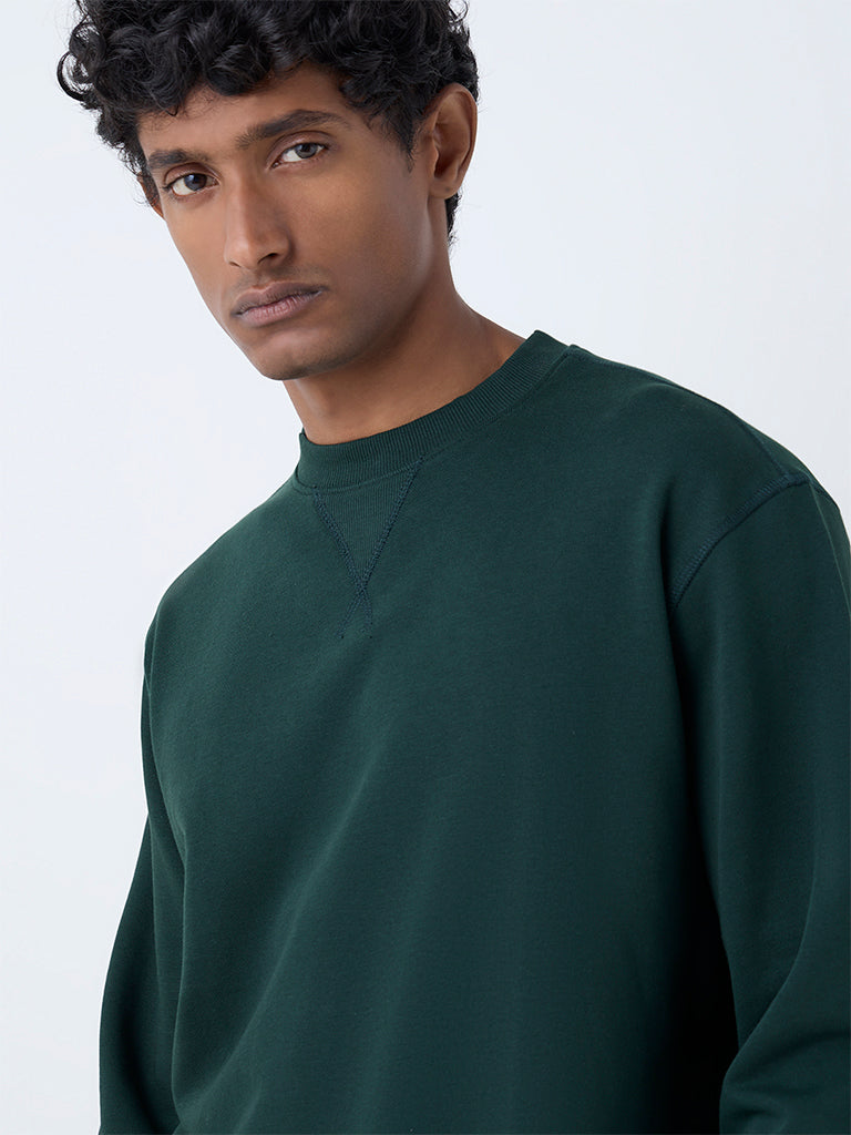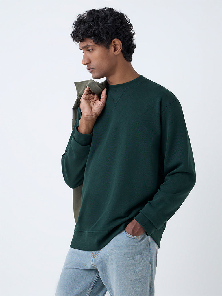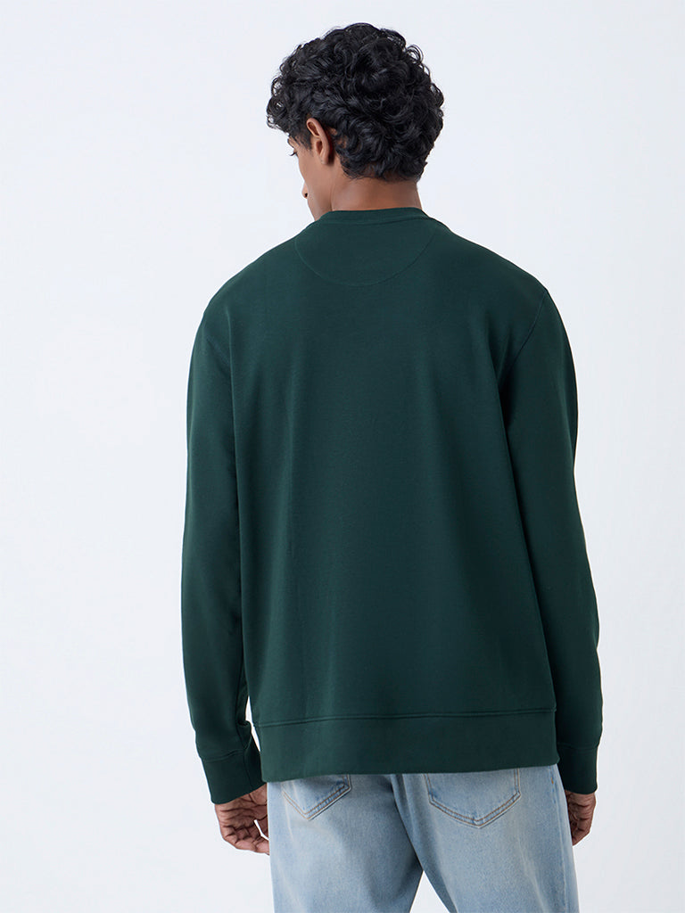 WES Casuals Dark Green Relaxed-Fit Cotton-Blend Sweatshirt