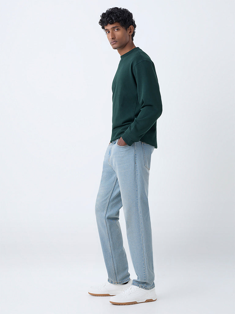 This dark green sweatshirt from WES Casuals is crafted in a soft cotton-blend fabric for everyday comfort. Styled in a relaxed fit with a crew neck and full sleeves. it’s a versatile piece for laid-back layering.