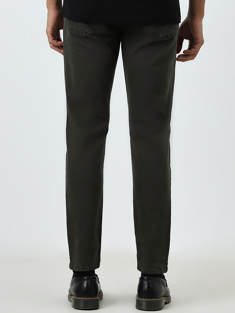 WES Casuals Dark Olive Slim-Fit Mid-Rise Jeans