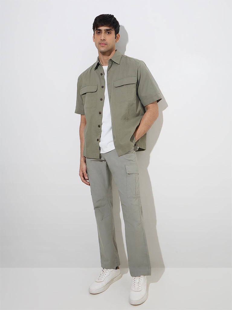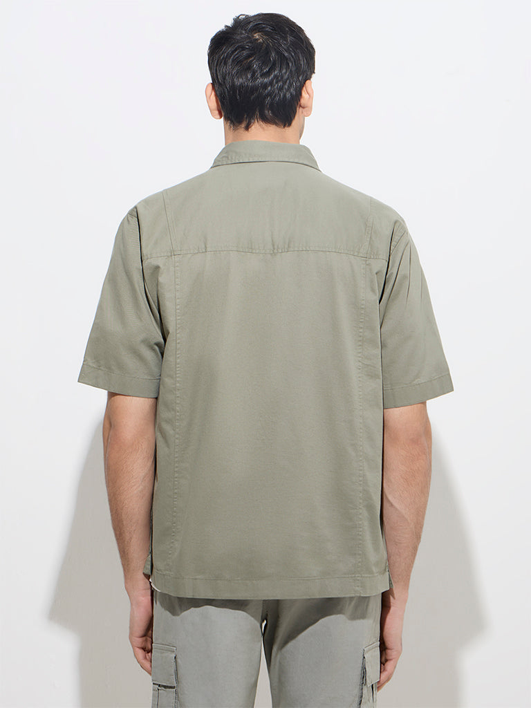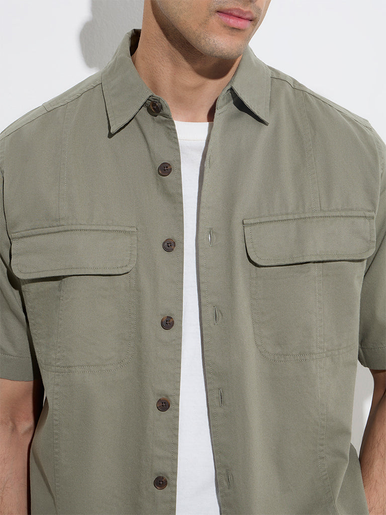 WES Casuals Dark Sage Relaxed-Fit Cotton Shirt
