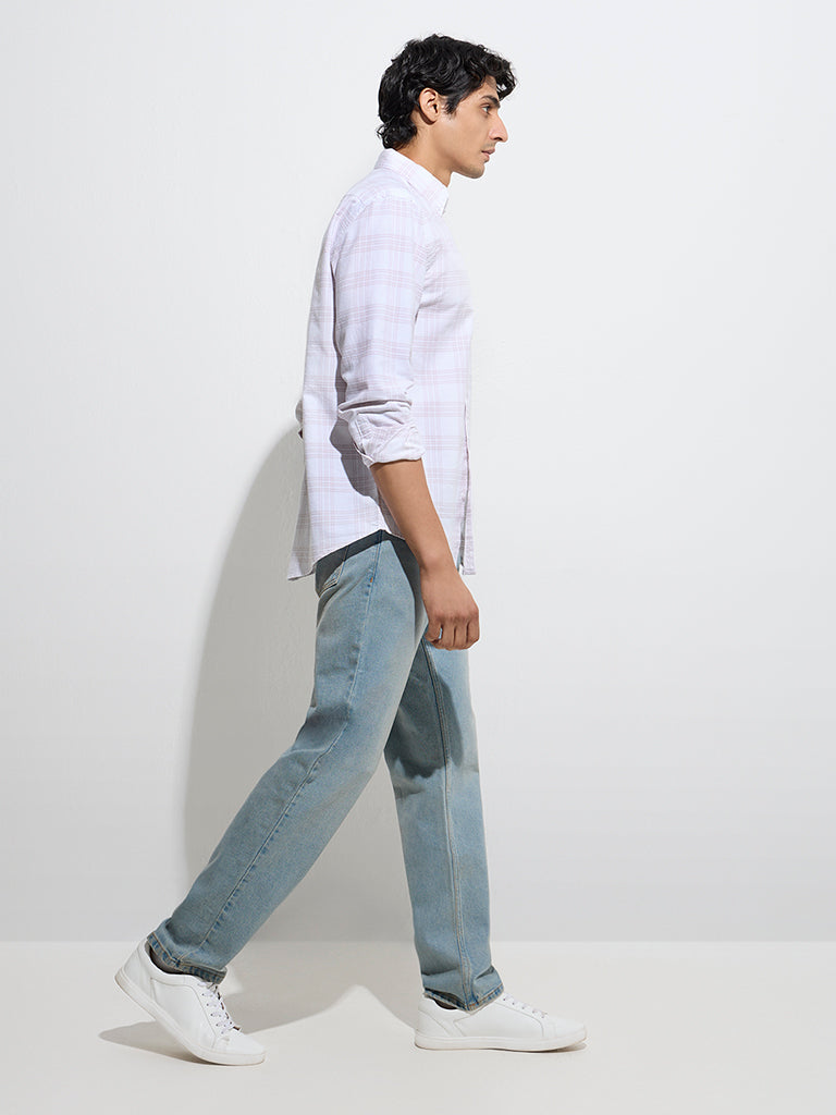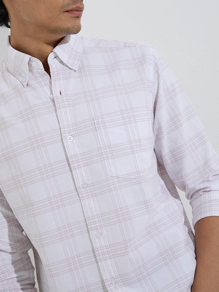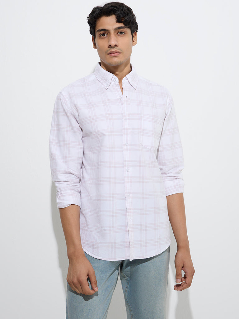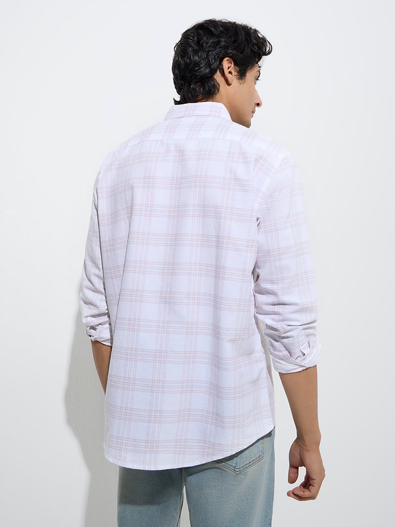 WES Casuals Dusty Pink Checkered Relaxed-Fit Cotton Shirt