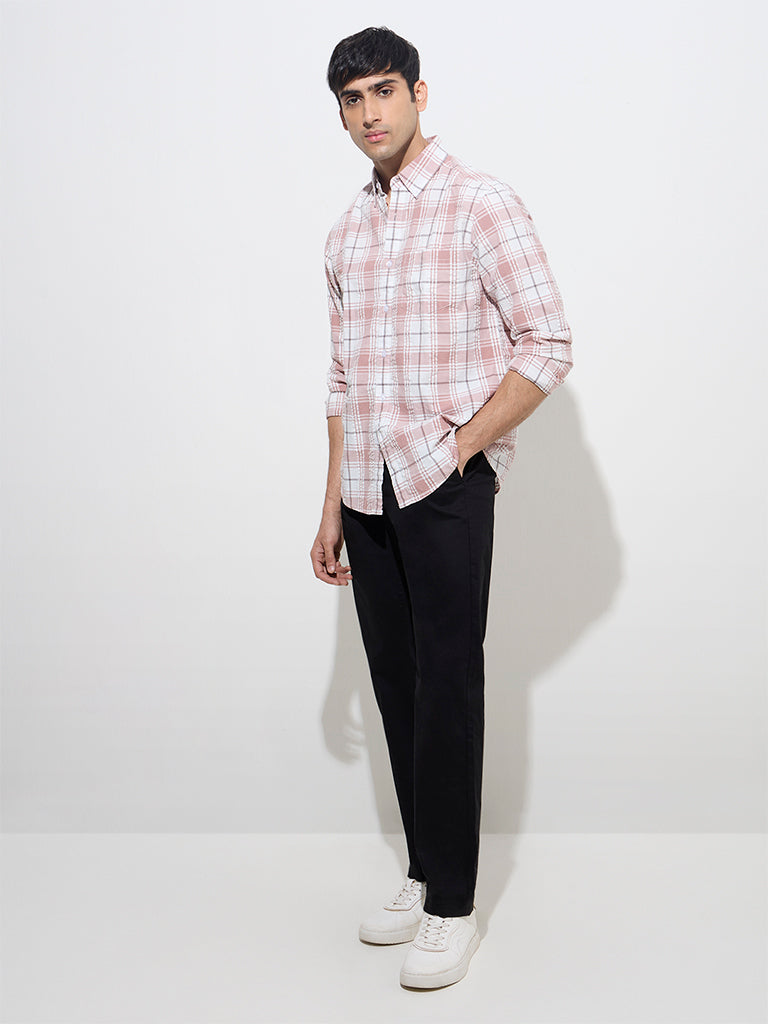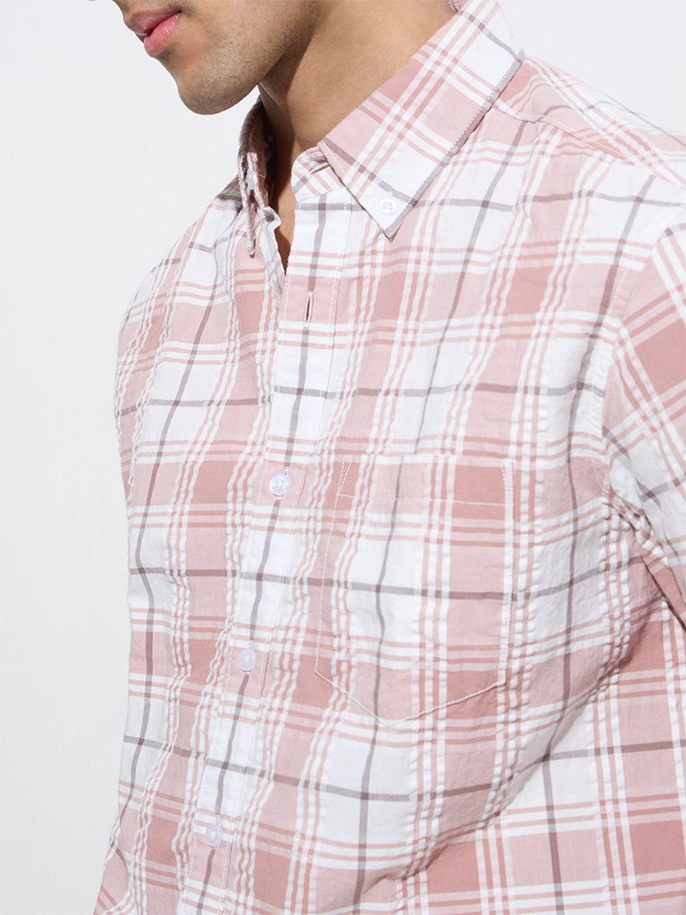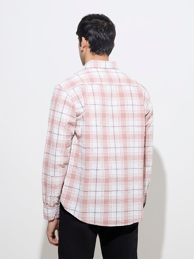 WES Casuals Dusty Pink Checks Design Relaxed-Fit Cotton Shirt