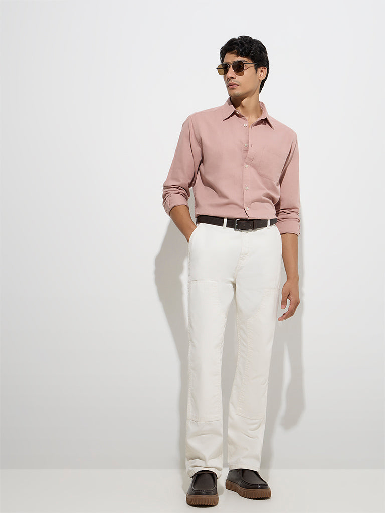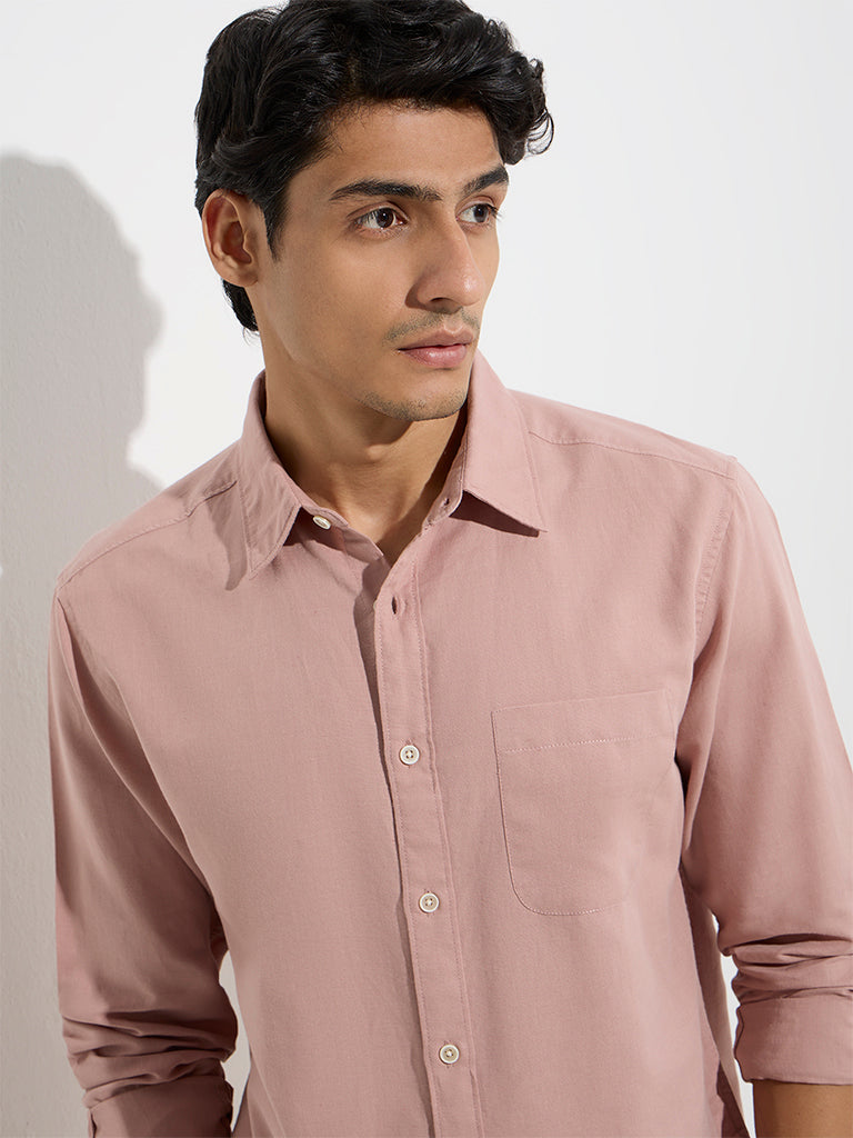 WES Casuals Dusty Pink Solid Relaxed-Fit Cotton-Blend Shirt