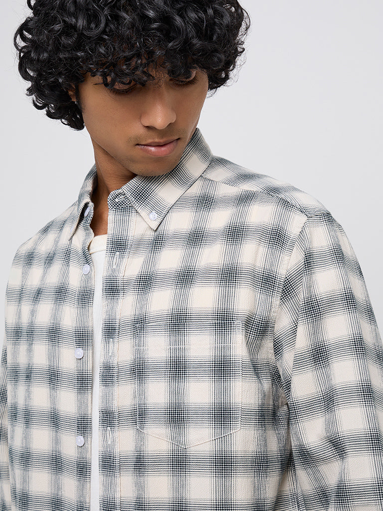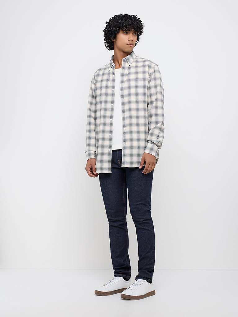 WES Casuals Green Checkered Relaxed-Fit Cotton-Blend Shirt