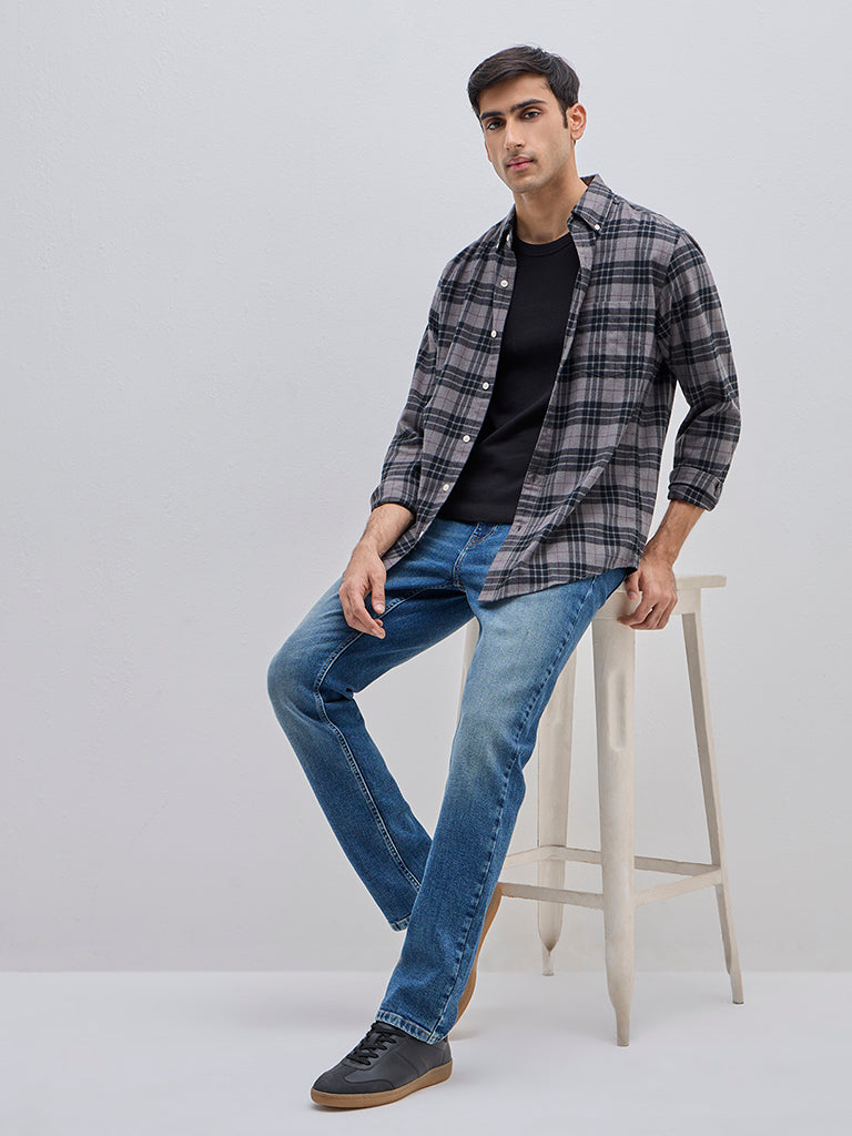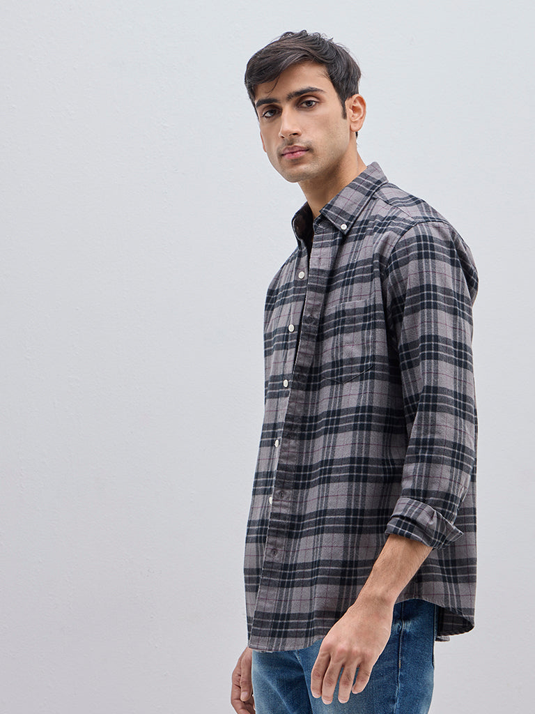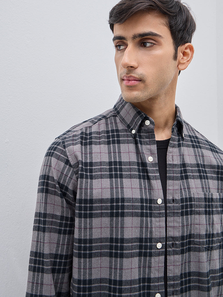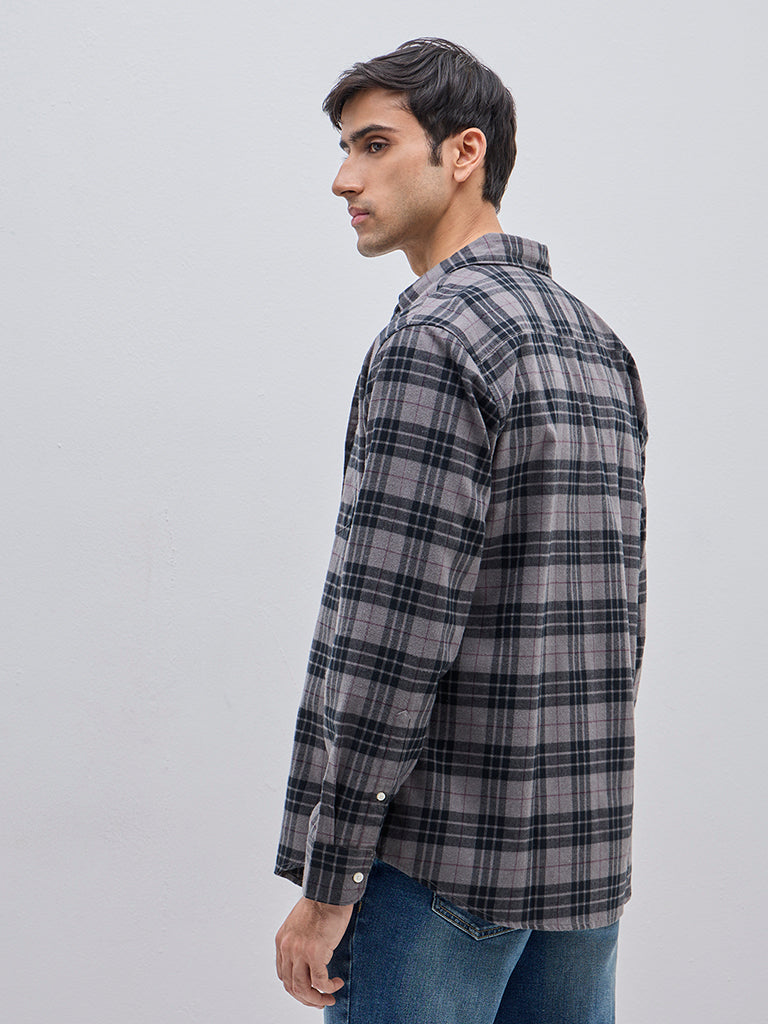 WES Casuals Grey Checkered Relaxed-Fit Cotton-Blend Shirt