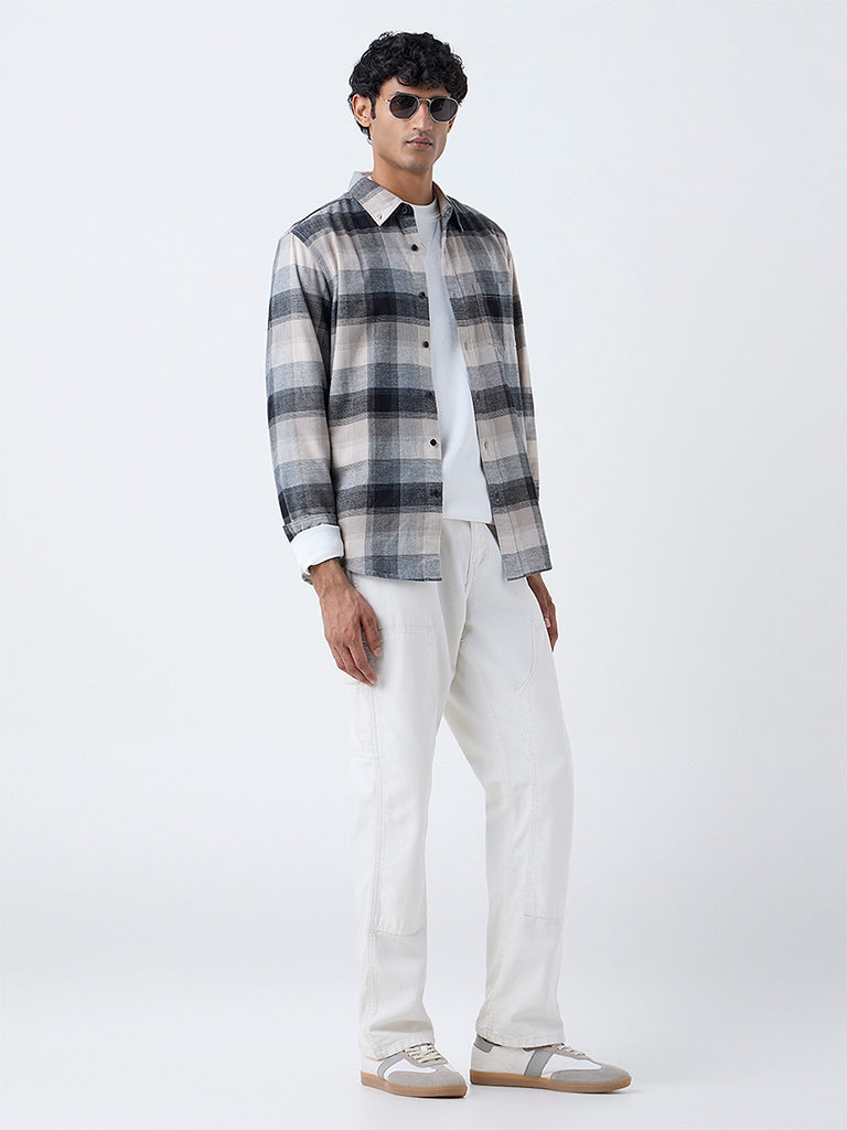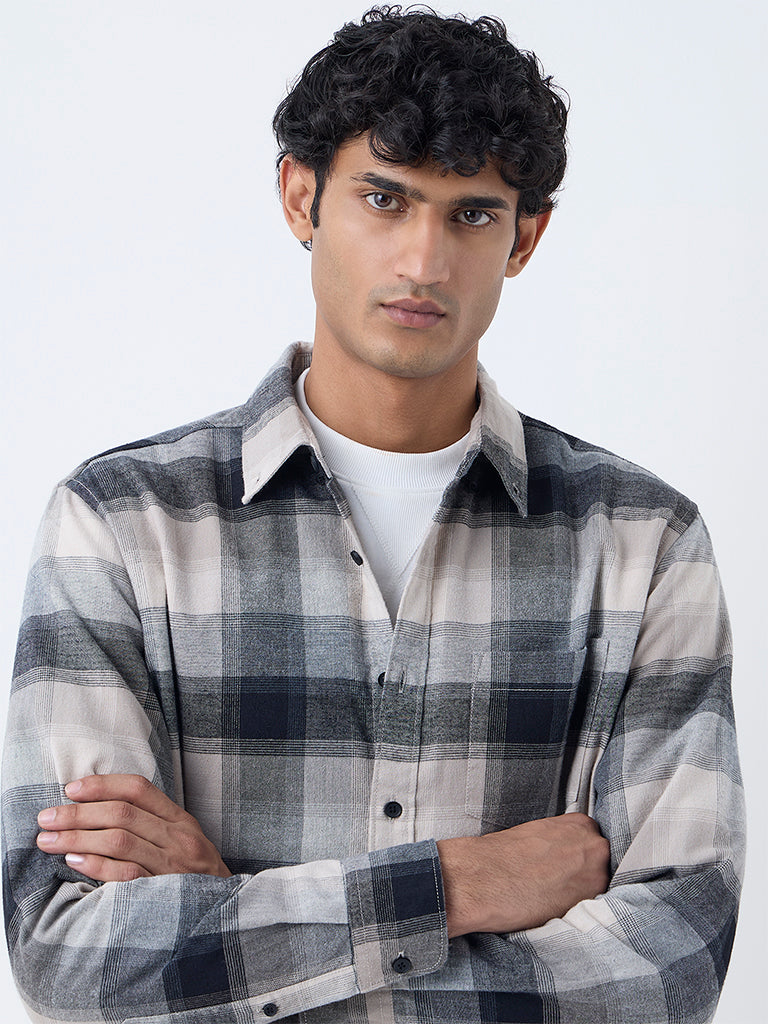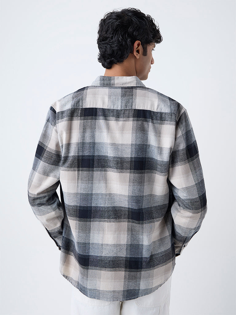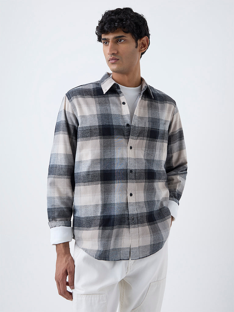 WES Casuals Grey Checks Printed Relaxed-Fit Cotton-Blend Shirt
