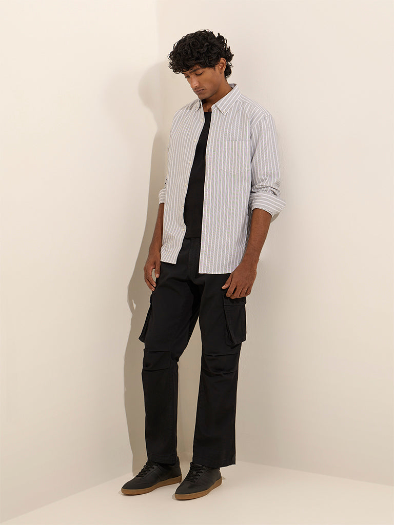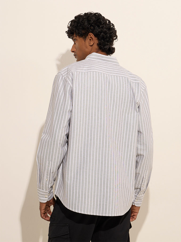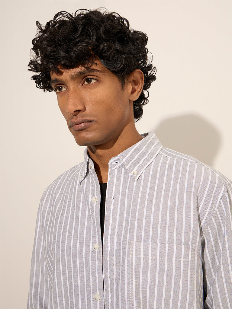 WES Casuals Grey Striped Relaxed-Fit Cotton Shirt