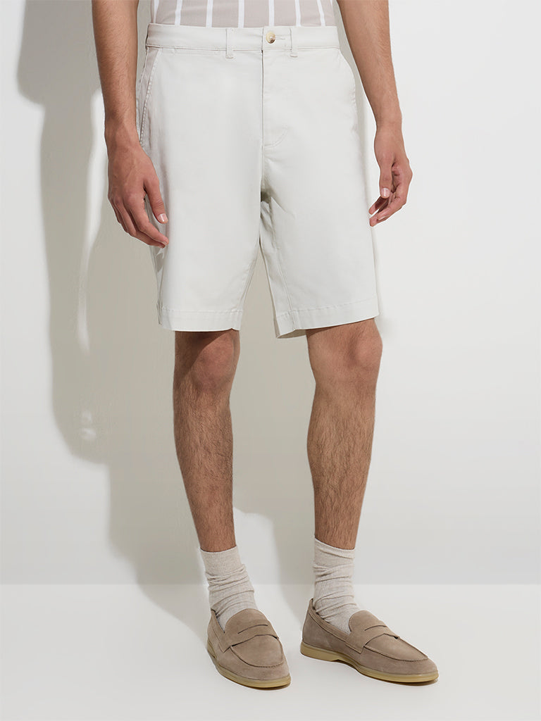 WES Casuals Light Beige Relaxed-Fit Cotton-Blend Shorts
