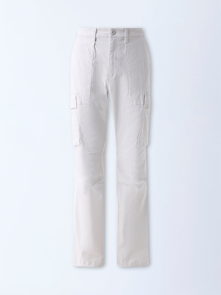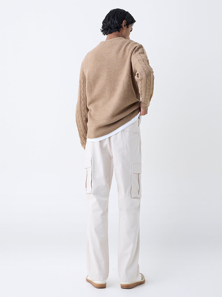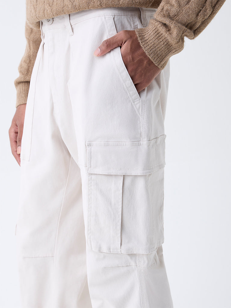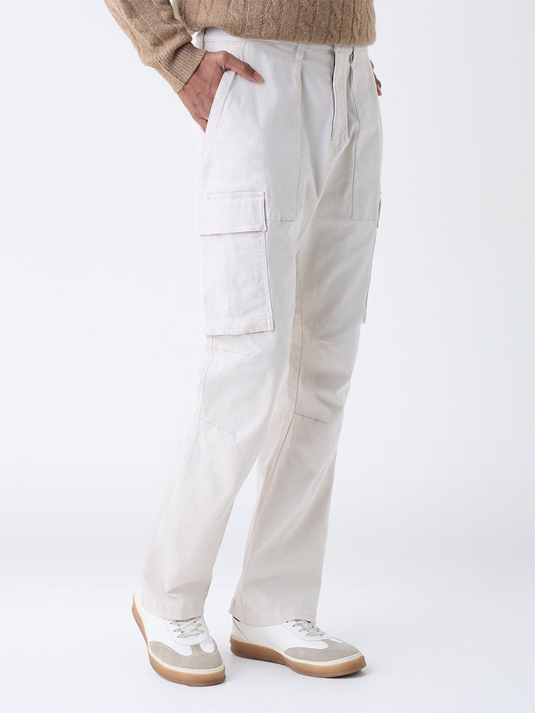 WES Casuals Light Beige Relaxed-Fit Mid-Rise Cotton Pants