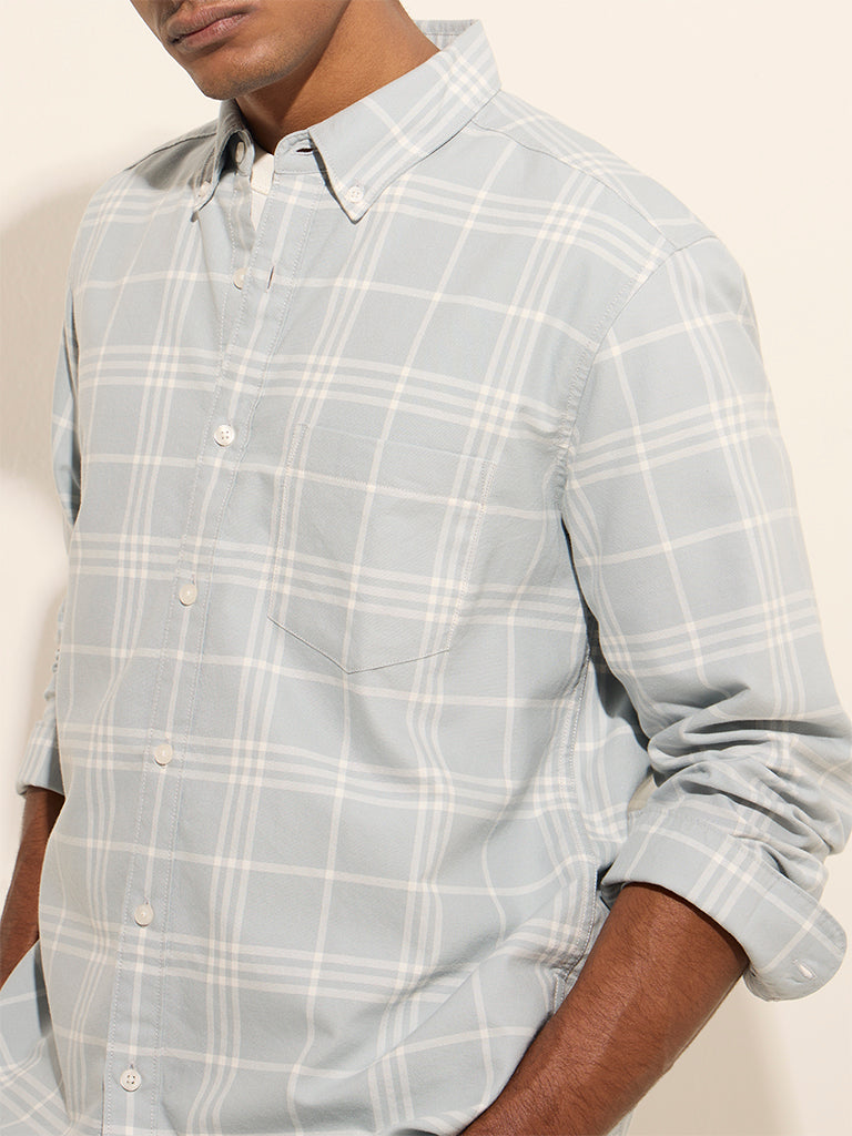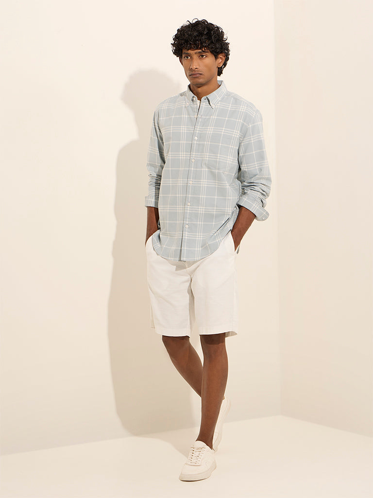 WES Casuals Light Blue Checkered Relaxed-Fit Cotton Shirt