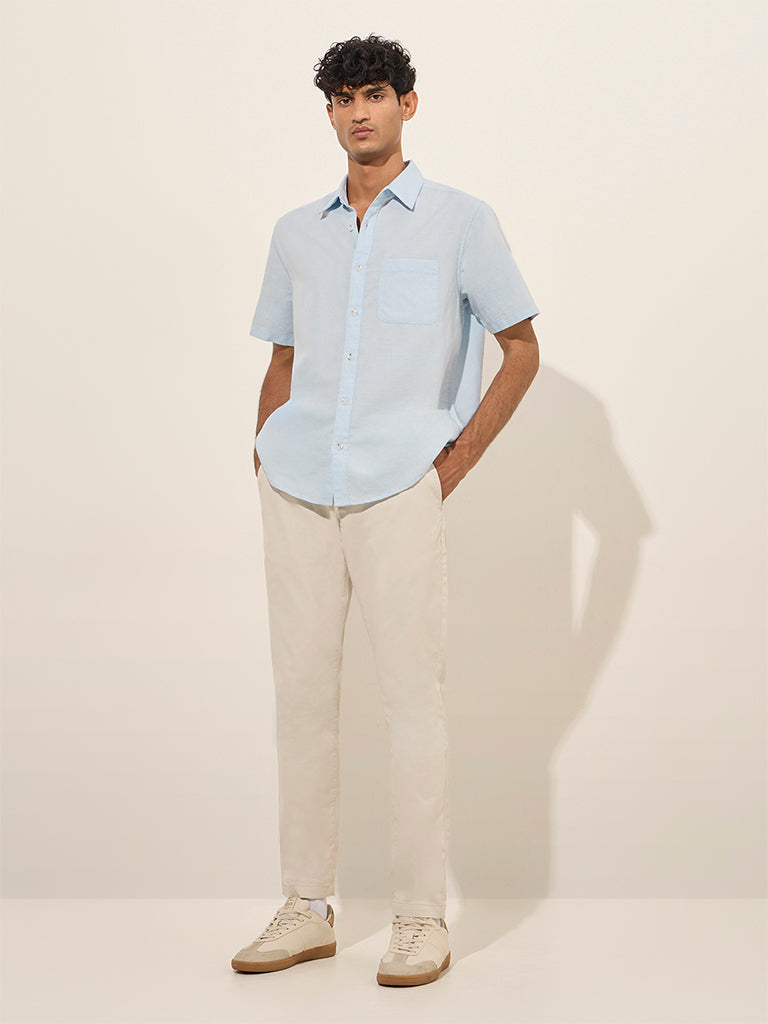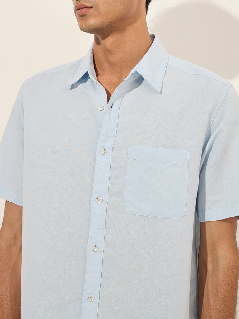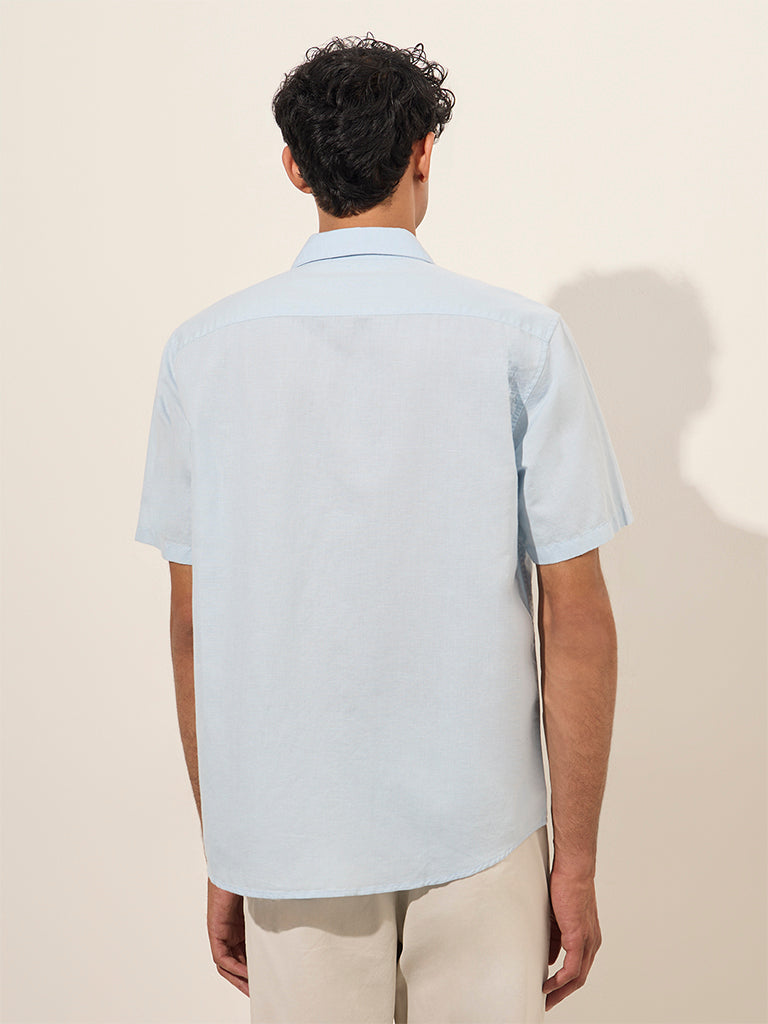 WES Casuals Light Blue Solid Relaxed-Fit Cotton-Blend Shirt