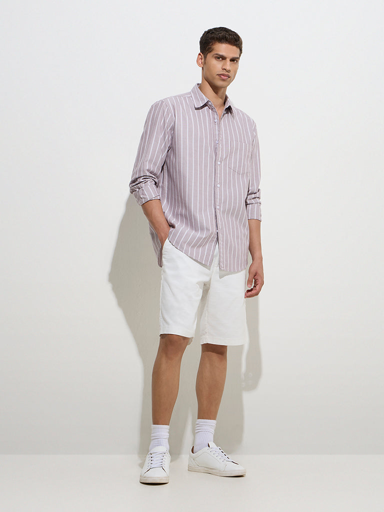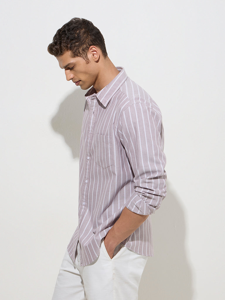 WES Casuals Light Mauve Striped Relaxed-Fit Cotton Shirt