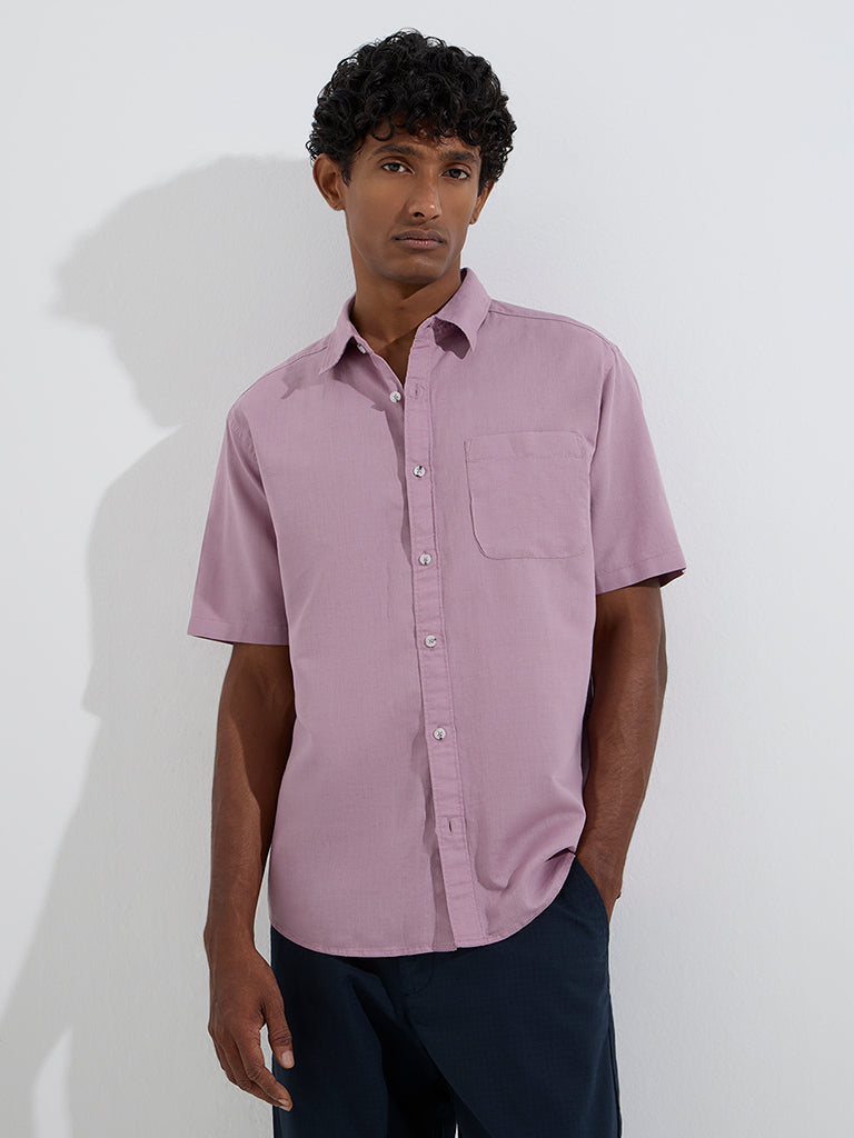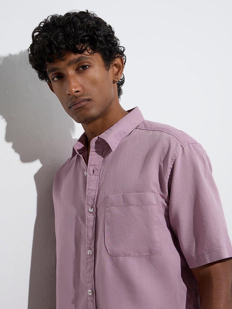 WES Casuals Mauve Solid Relaxed-Fit Linen-Blend Shirt