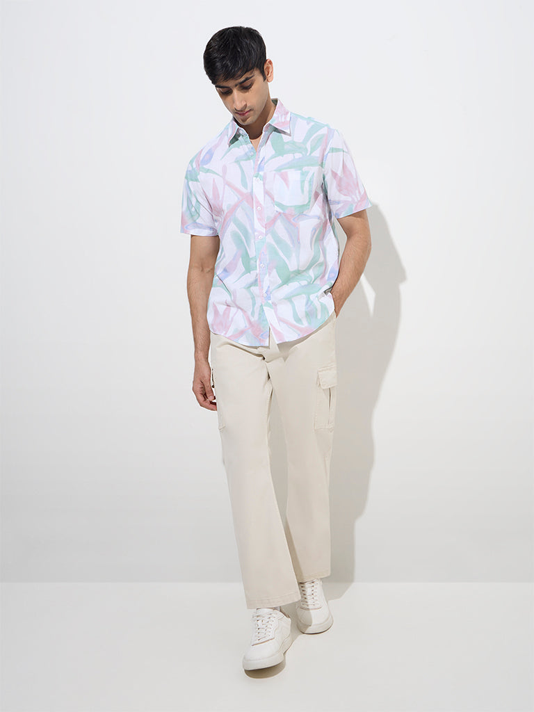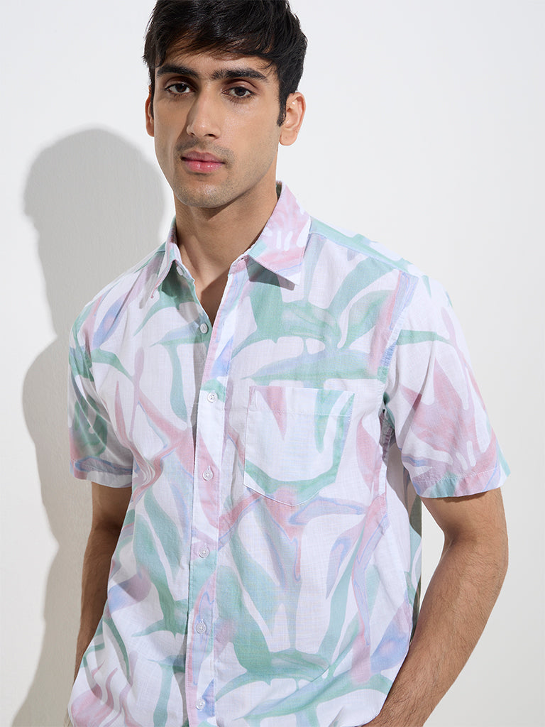 WES Casuals Multicolour Foliage Design Relaxed-Fit Cotton Shirt