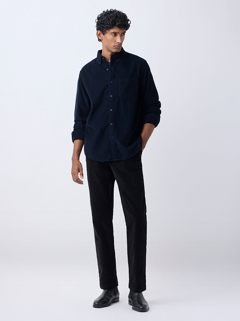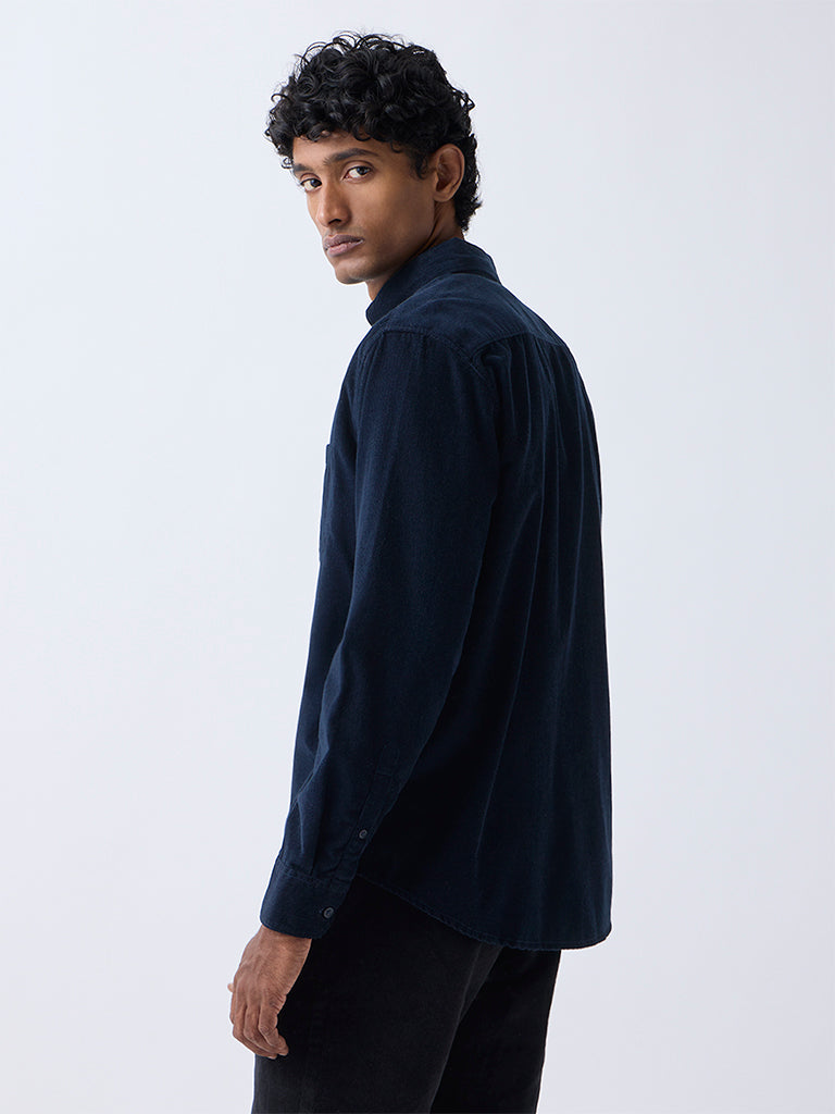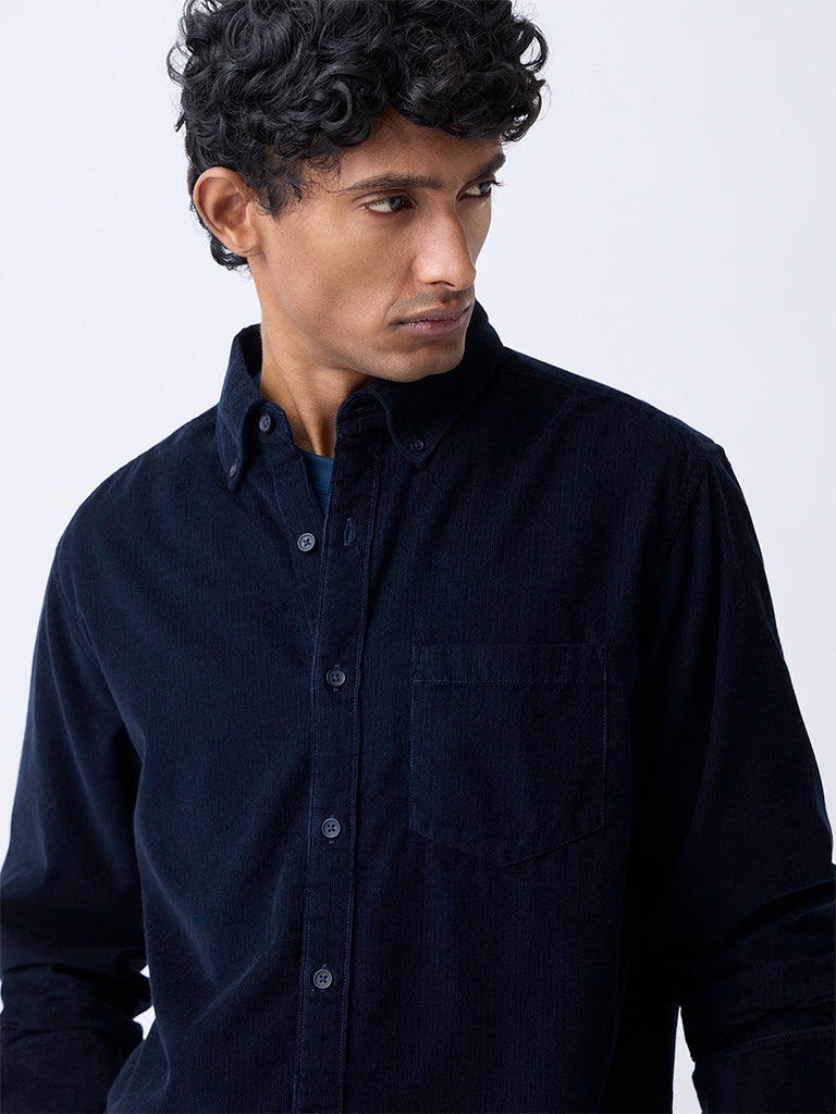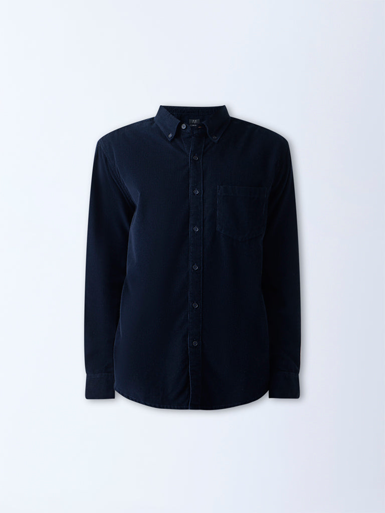 WES Casuals Navy Corduroy Relaxed-Fit Cotton Shirt