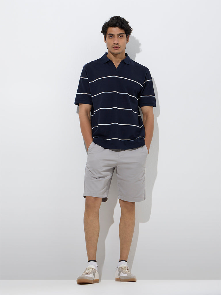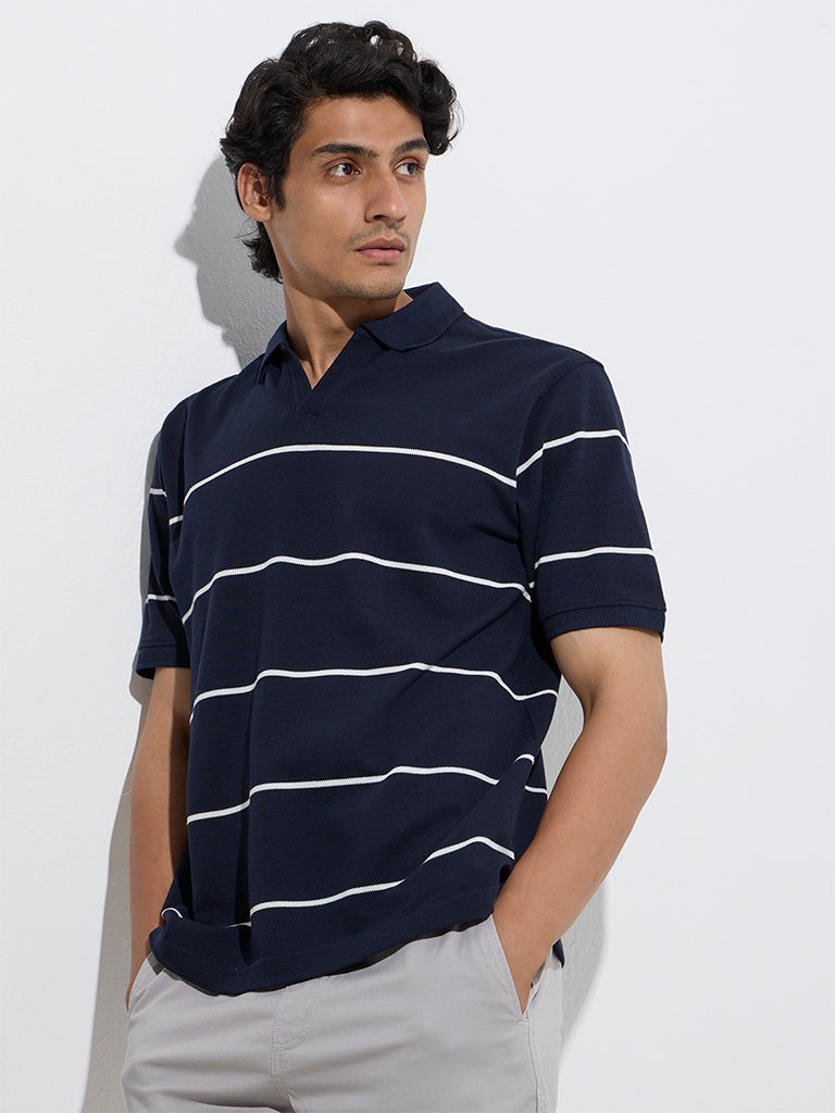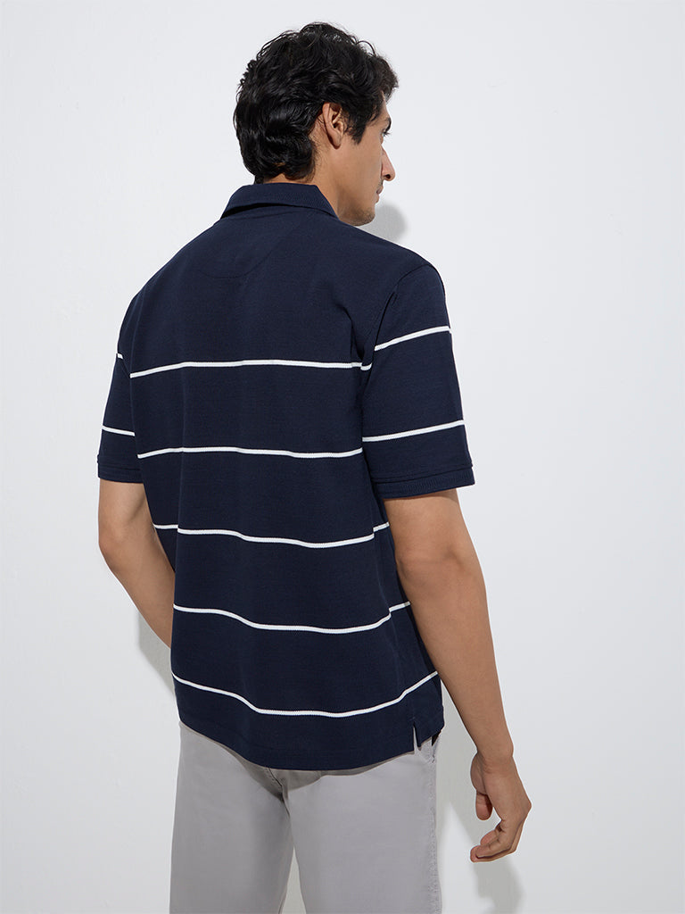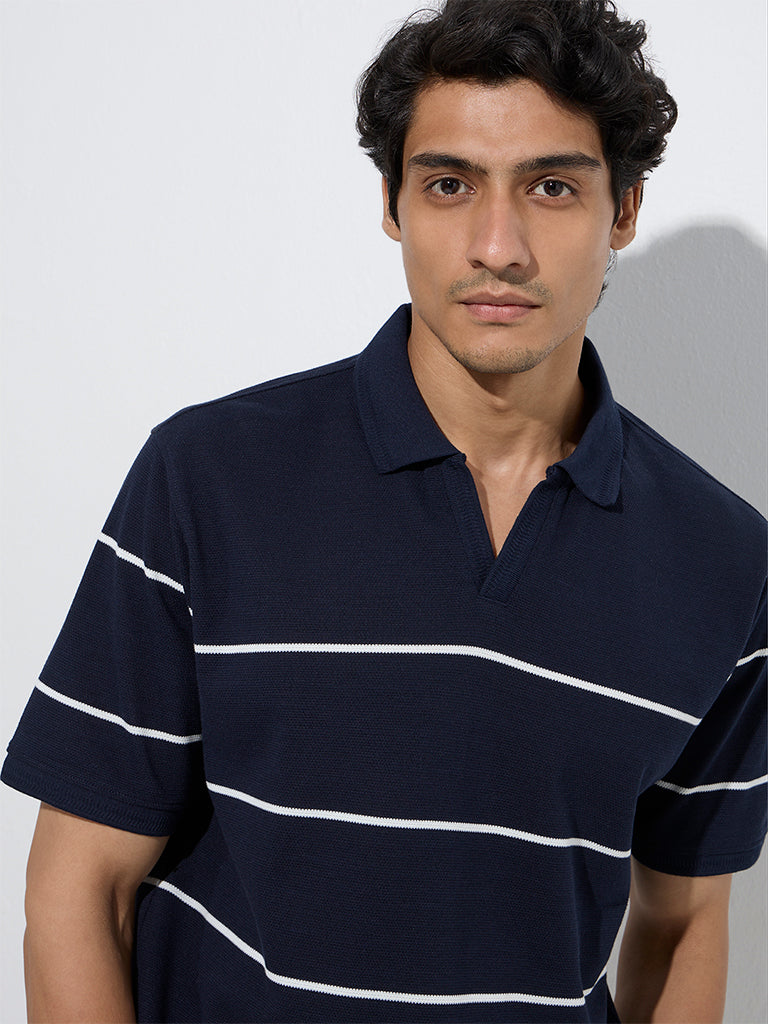 WES Casuals Navy Relaxed-Fit Cotton-Blend Polo T-Shirt