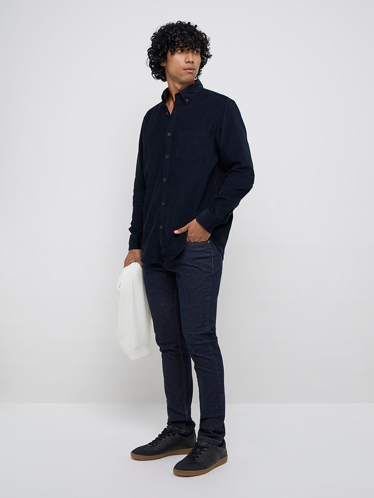 WES Casuals Navy Relaxed-Fit Cotton Shirt
