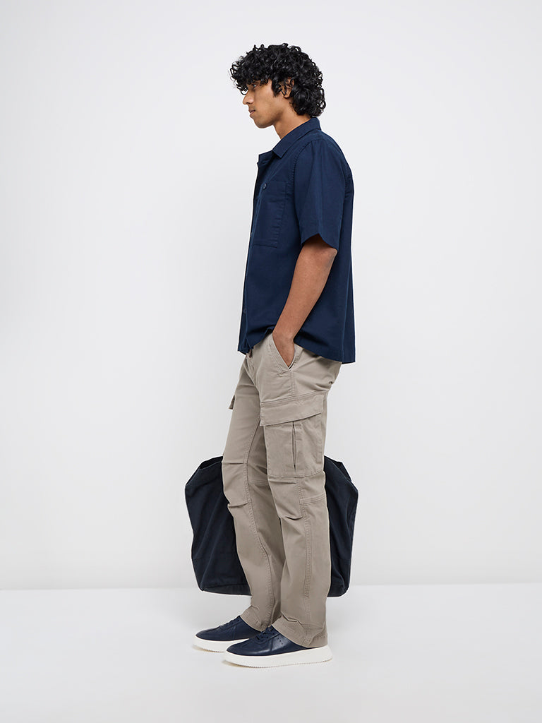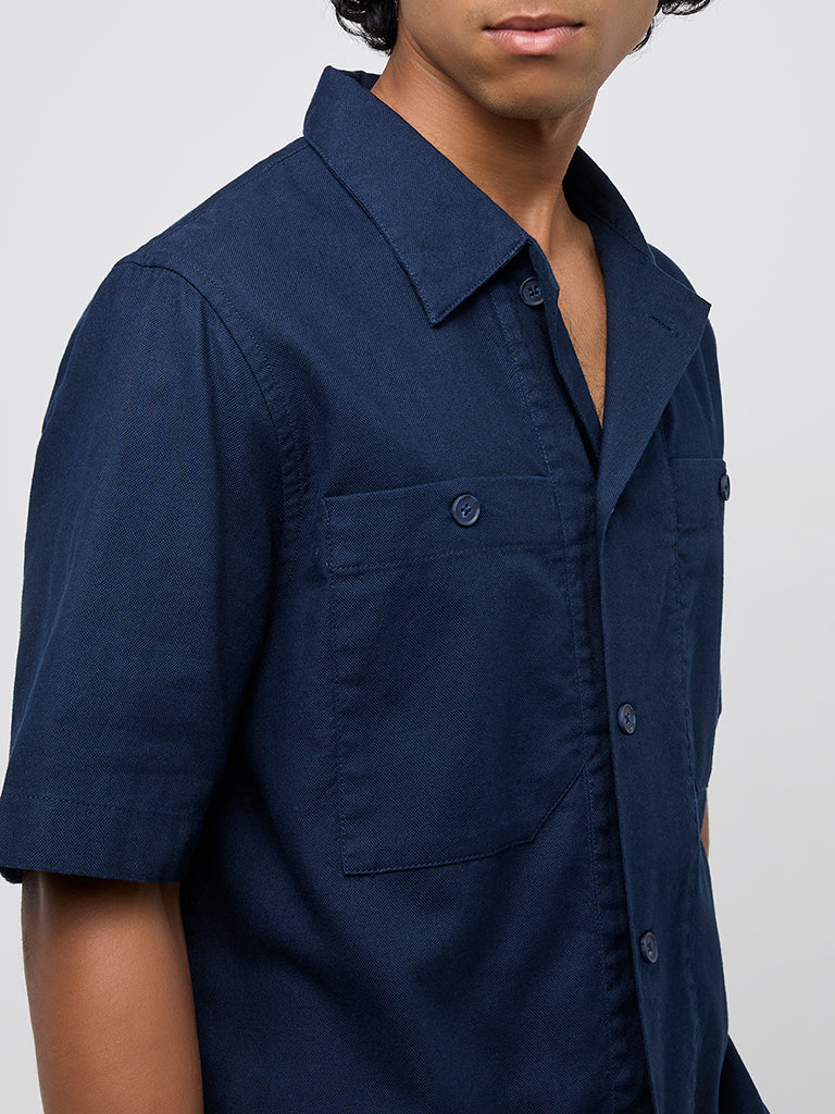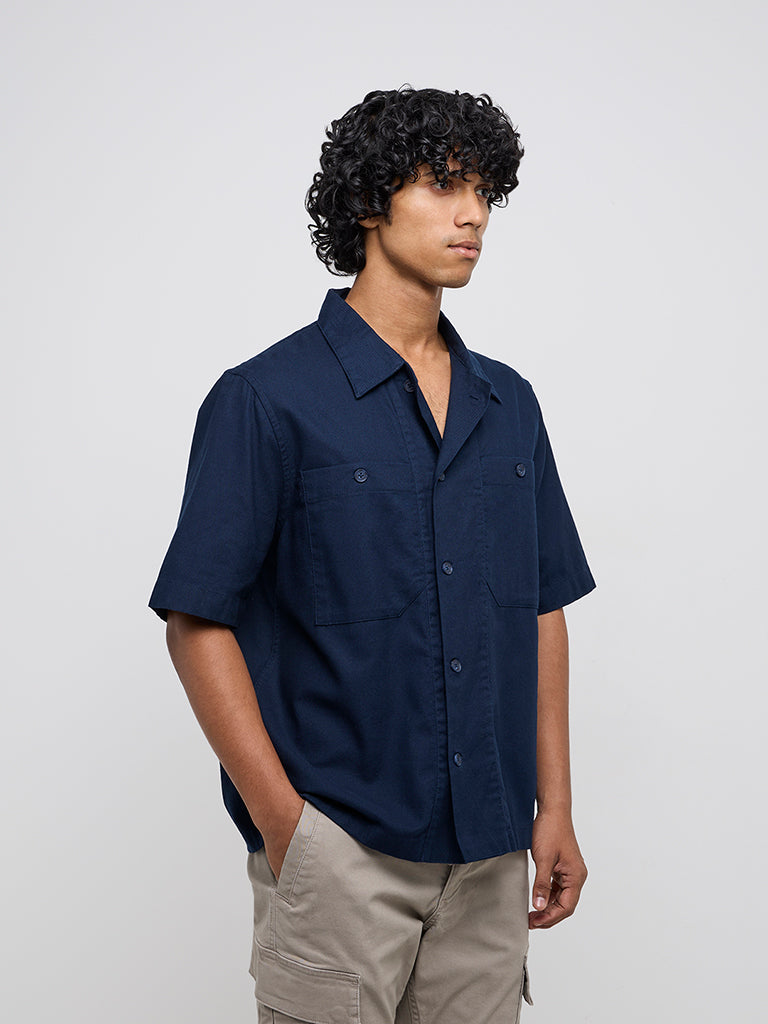 WES Casuals Navy Relaxed-Fit Cotton Shirt