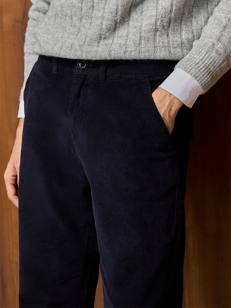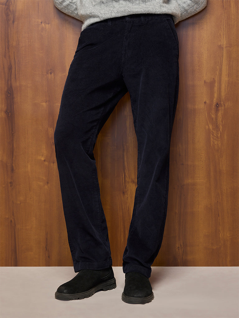 WES Casuals Navy Relaxed Fit Mid-Rise Corduroy Chinos