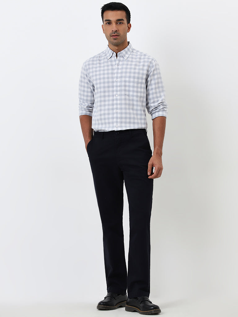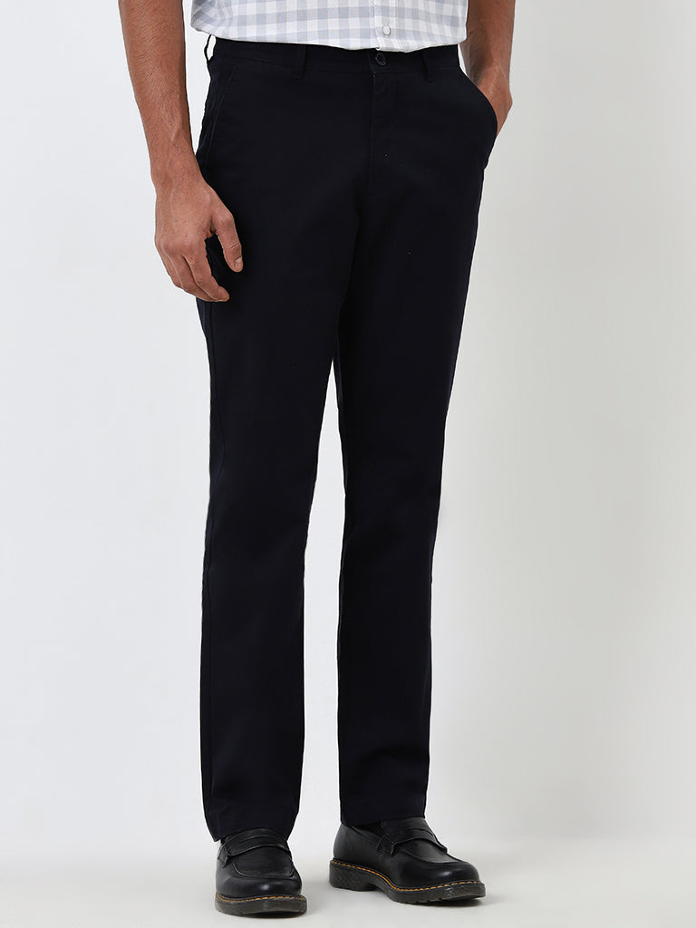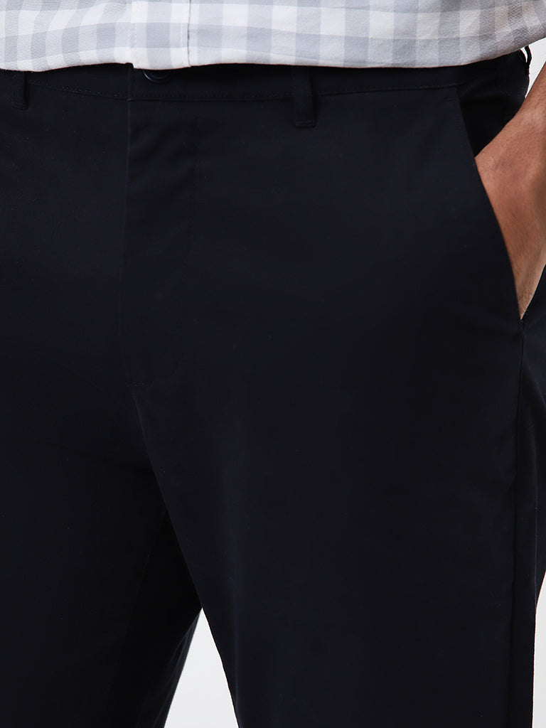 WES Casuals Navy Relaxed-Fit Mid-Rise Cotton-Blend Chinos