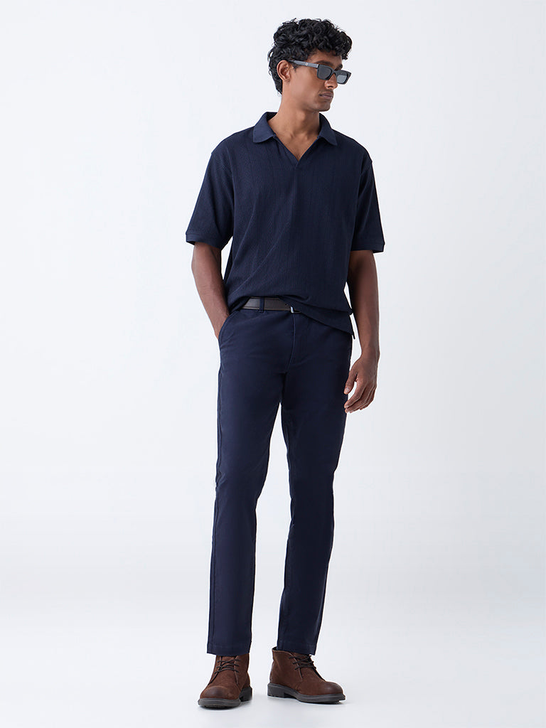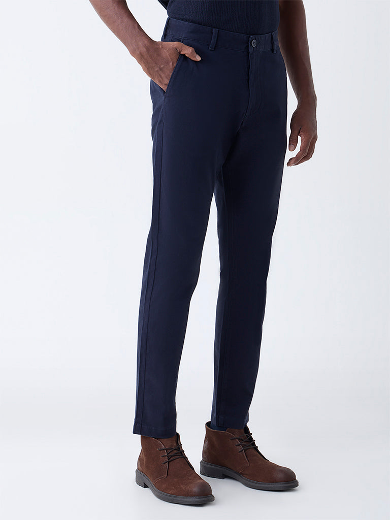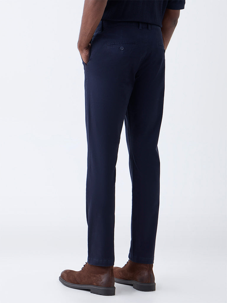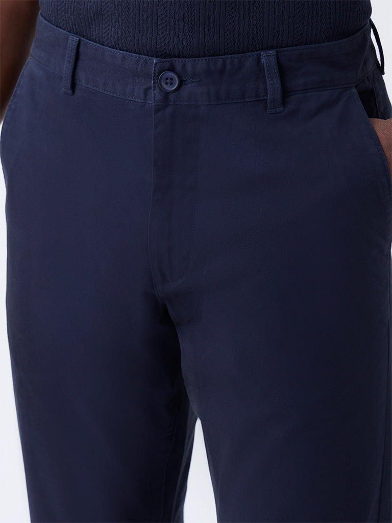 WES Casuals Navy Slim-Fit Mid-Rise Cotton-Blend Chinos
