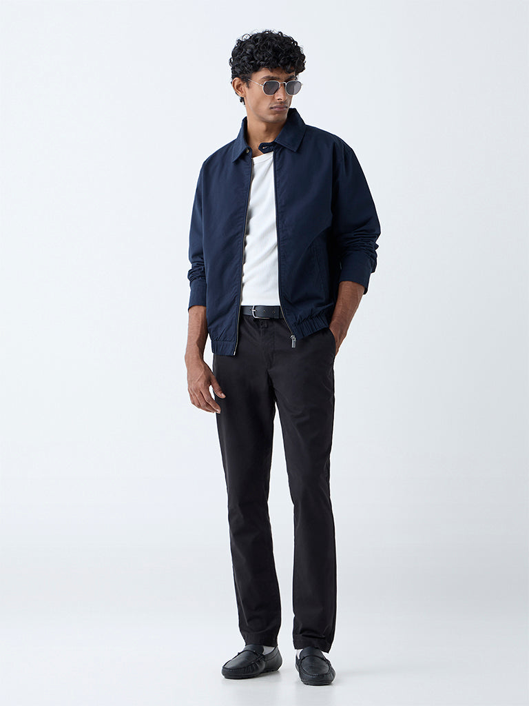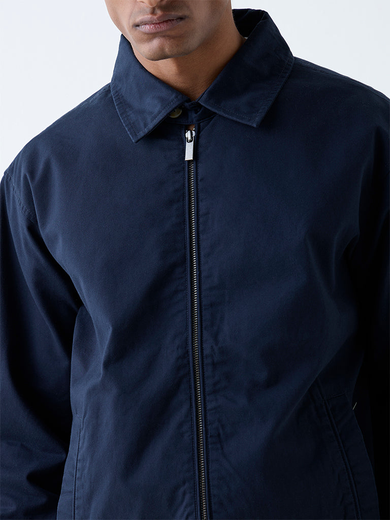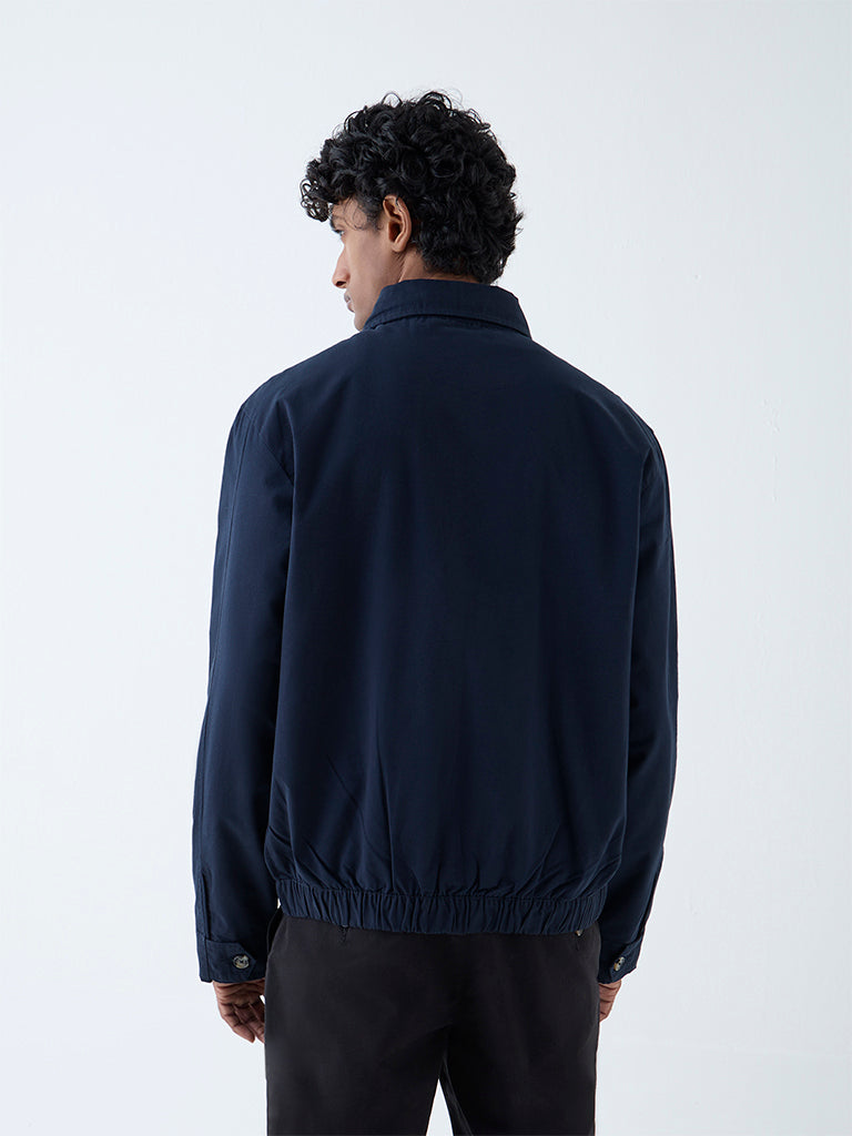 WES Casuals Navy Solid Relaxed-Fit Cotton Jacket