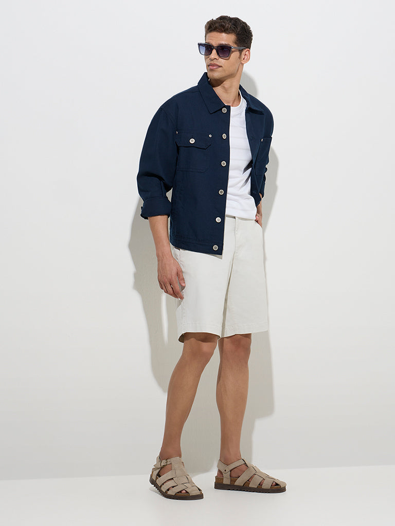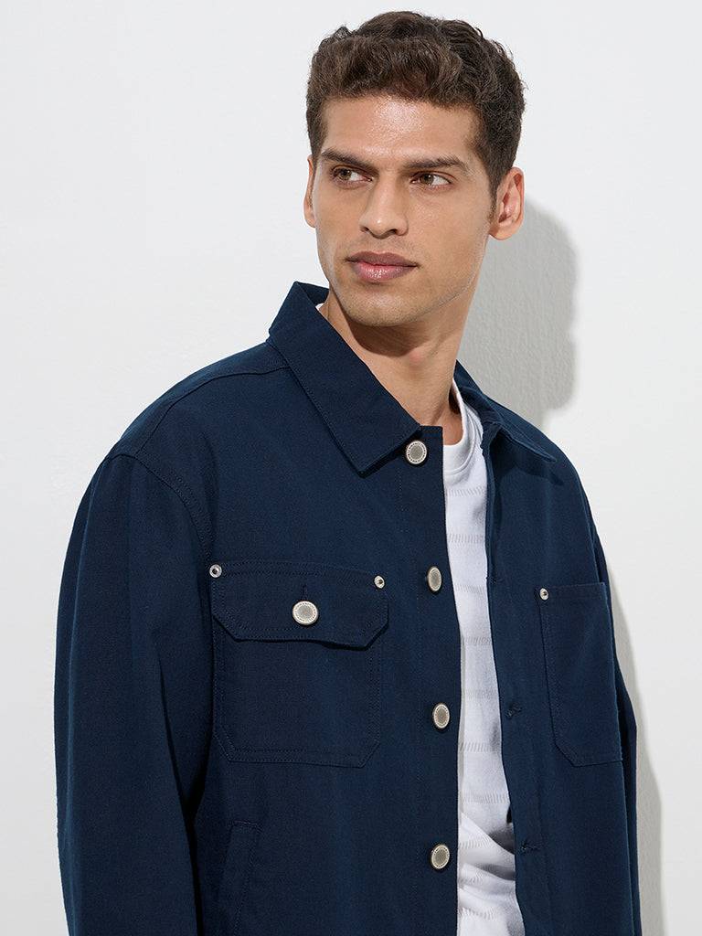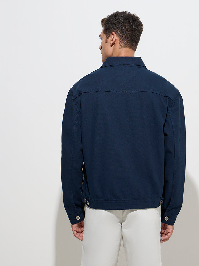 WES Casuals Navy Solid Relaxed-Fit Cotton Jacket